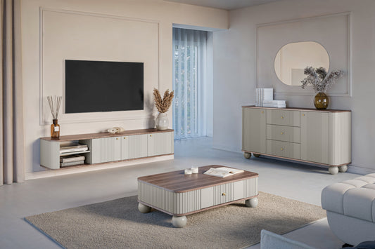 Vitrīnas skapis AUSTIN zelta kājas 100/200/45 kašmirs