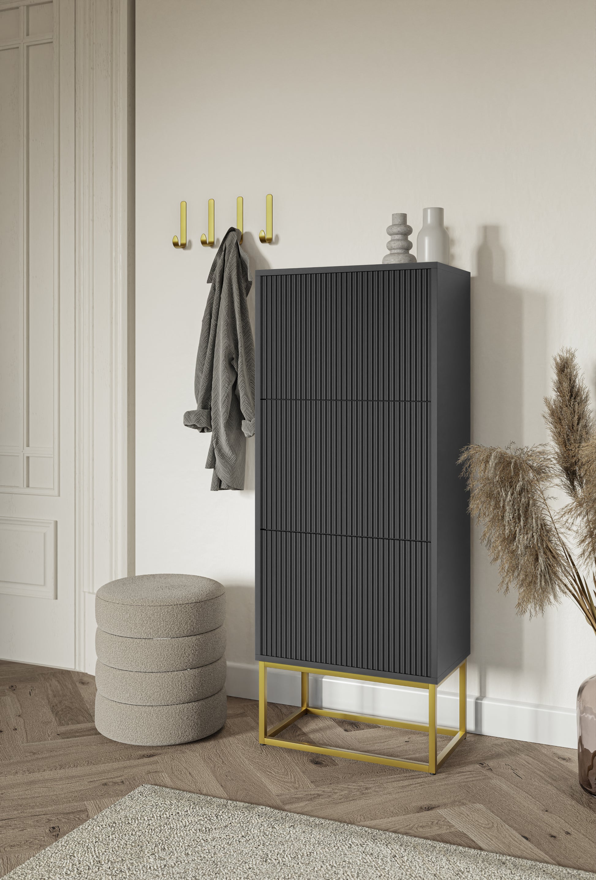 Apavu skapis Velda 50/30/125 cm melns/zelts