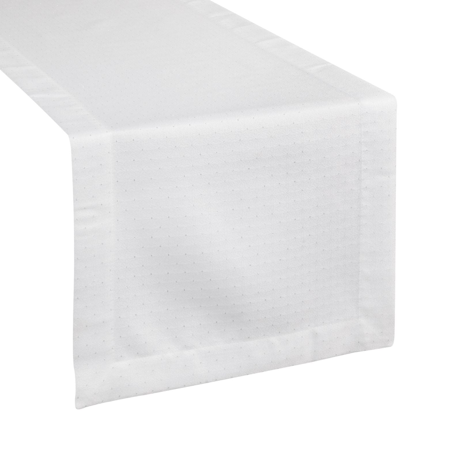 Skrejceļš ar sudraba pavedienu un caurumu platums: 40 cm, garums: 200 CM cm, krāsa: balta, svars: 160 GSM, sastāvs: Sastāvs: 100% poliesteris.