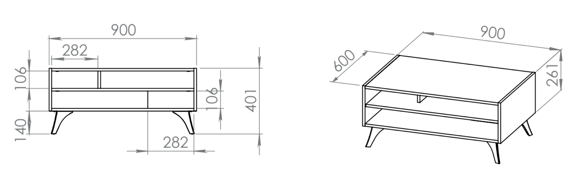 Kafijas galds Toskana 90/40/60 cm ozols/melns