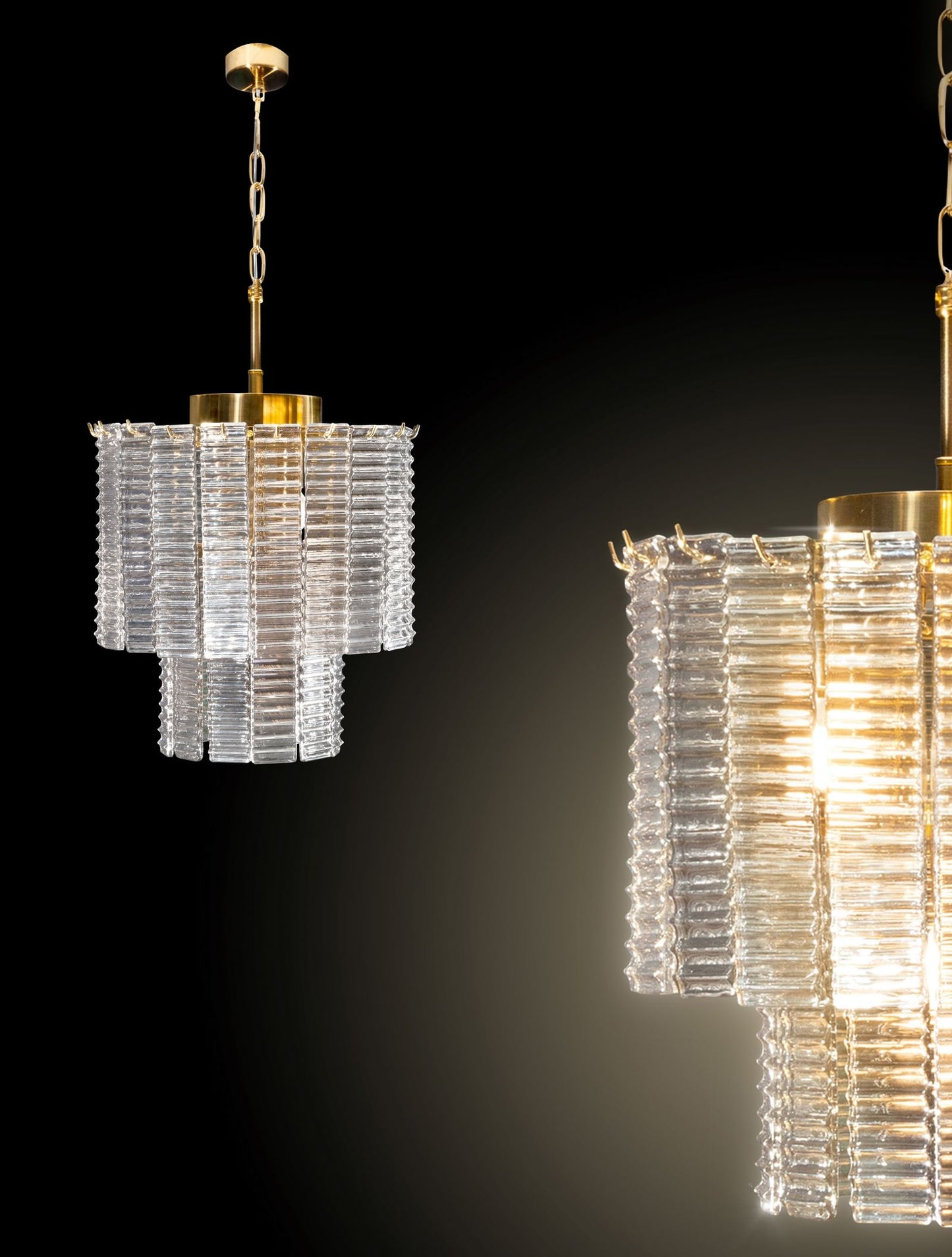 Dekoratīvs piekaramais lukturis Platums: (fi) 32 cm, Garums: 40 cm, Krāsa: zelta, Sastāvs: dzelzs+stikls , Barošanas avots: CE 220-240V , Kvēlspuldze: 5 X E14 60W , Enerģijas klase: A-G