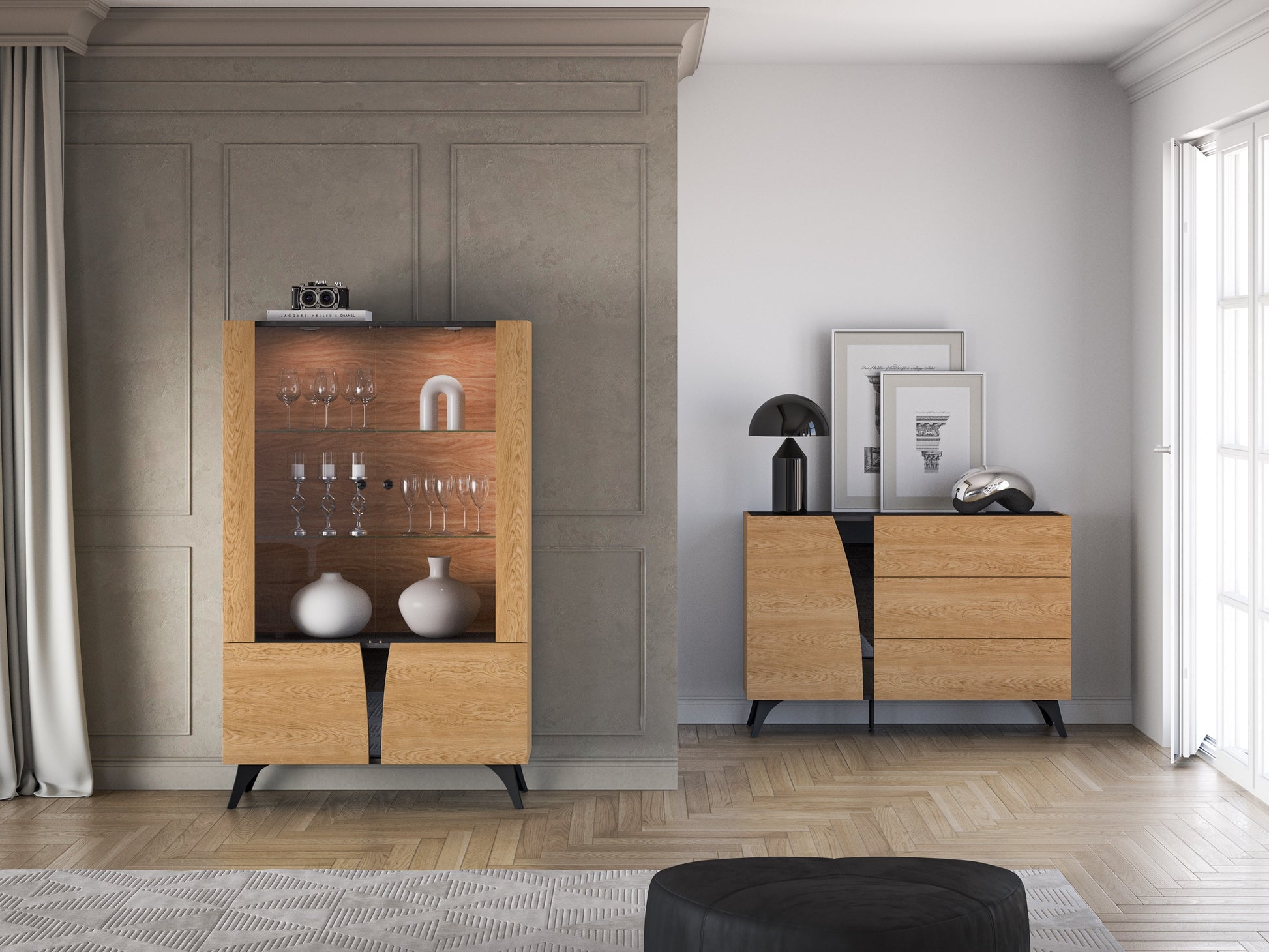 Skapis Toskana 152/94/38 cm ozols/melns