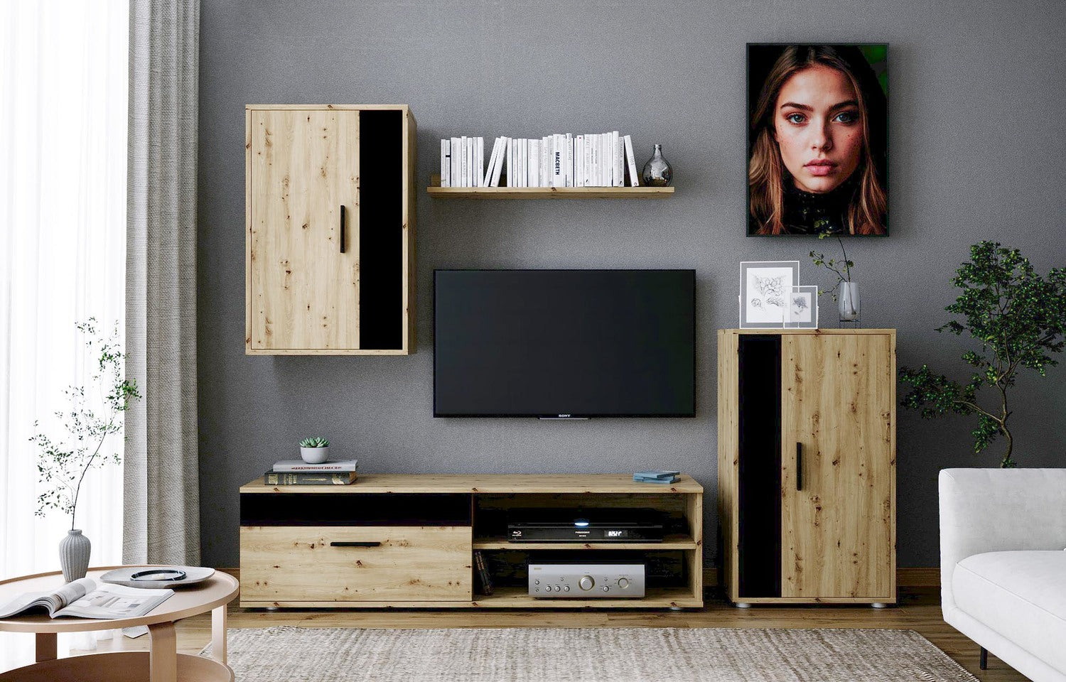 Mēbeļu komplekts Bensi 190 cm Artizan ozols/melns