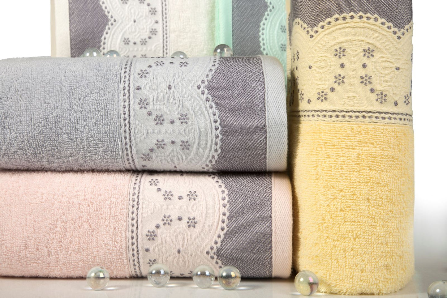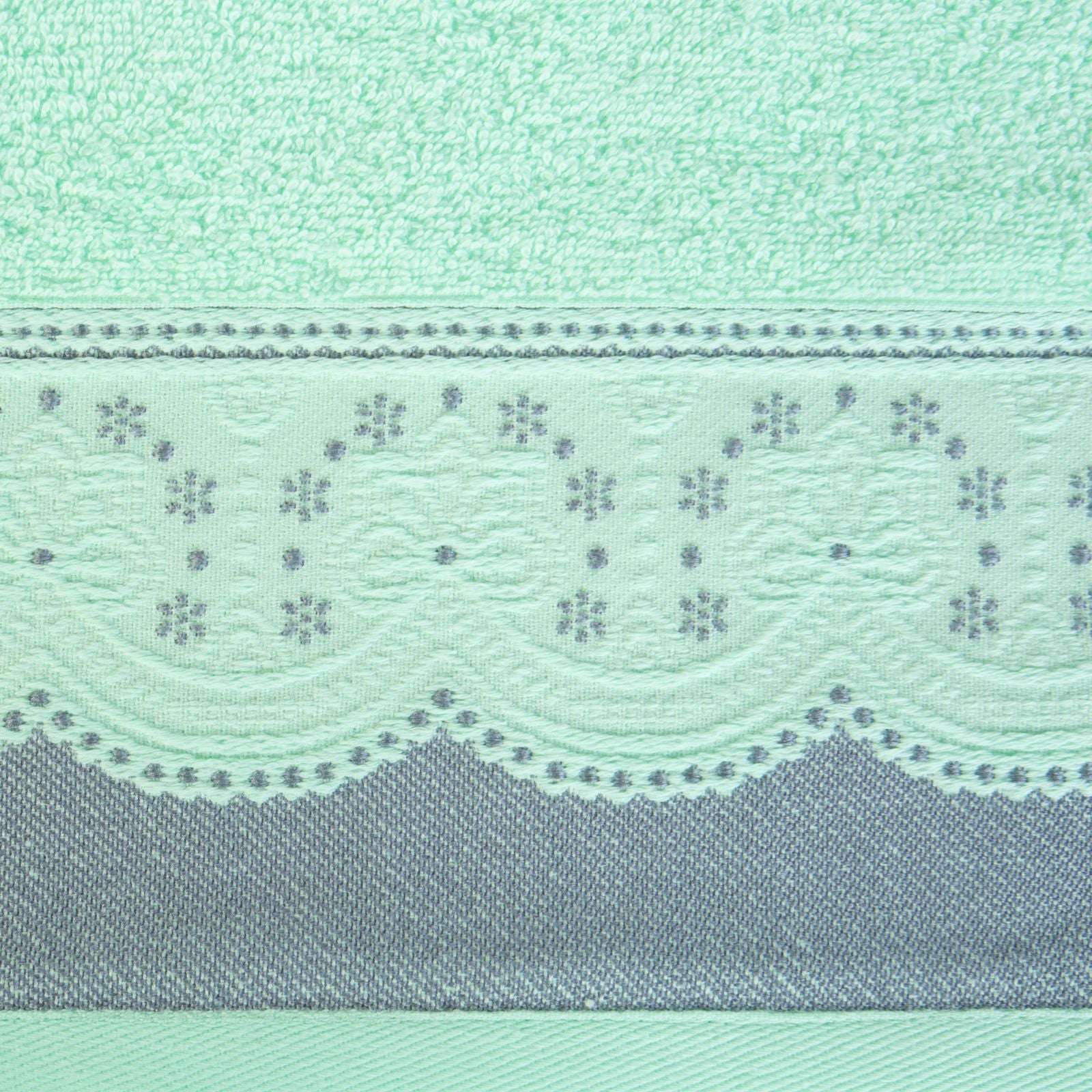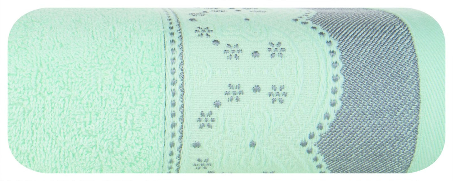 Elegants kokvilnas vannas dvielis no frotē auduma. Īsākas malas rotātas ar mežģīnes imitējošu aplikāciju. Viegli mazgājams, nebojājas. Platums: 70 cm, garums: 140 cm, krāsa: piparmētra, svars: 450 GSM, sastāvs: Sastāvs: 100% kokvilna;98% kokvilna 2% poliesteris