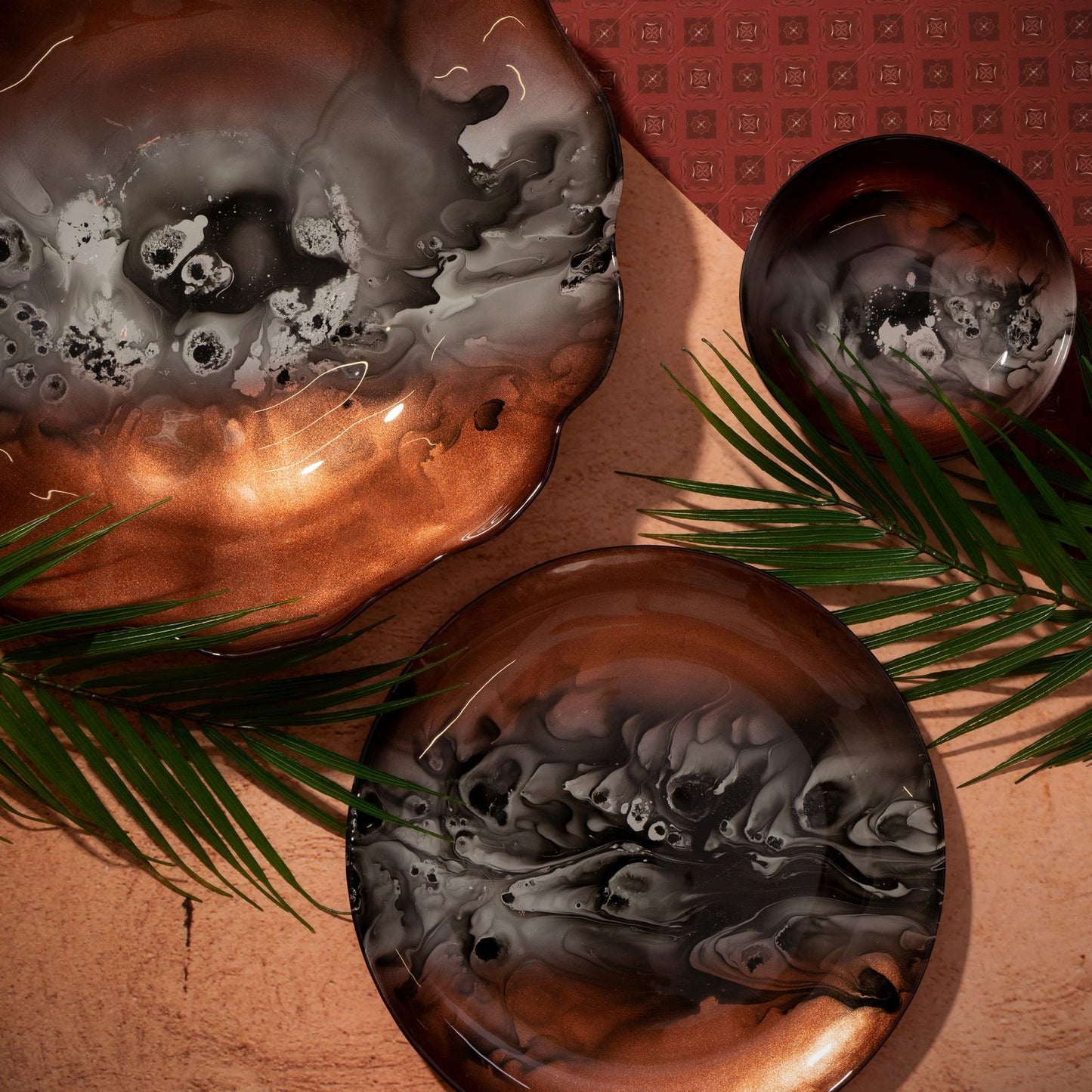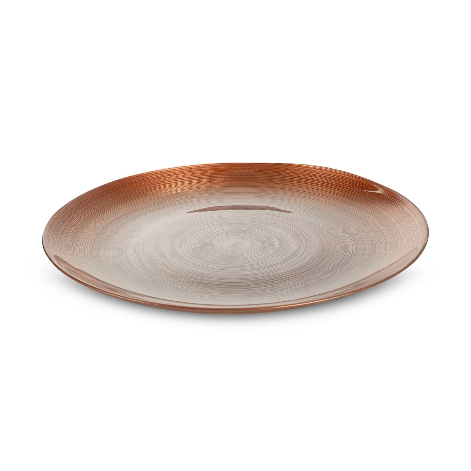 Dekoratīvā šķīvja platums: (fi) 28 cm, garums: 2 cm, krāsa: vara, sastāvs: Sastāvs: 100% stikls