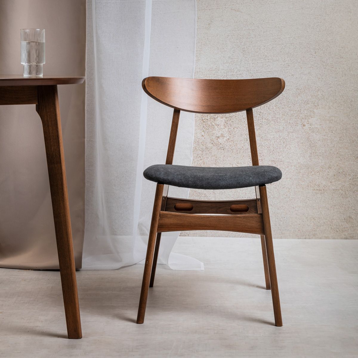 Materiāls Krēsls ir izgatavots no augstas kvalitātes dižskābarža koka, nodrošinot izturību un stabilitāti. Polsterētais pelēkais sēdeklis ir ne tikai estētiski pievilcīgs, bet arī ērts un viegli tīrāms, padarot to par ideālu izvēli ikdienas lietošanai. Papildinformācija Svars: 5,25 kg Augstums no zemes līdz sēdeklim: 45 cm