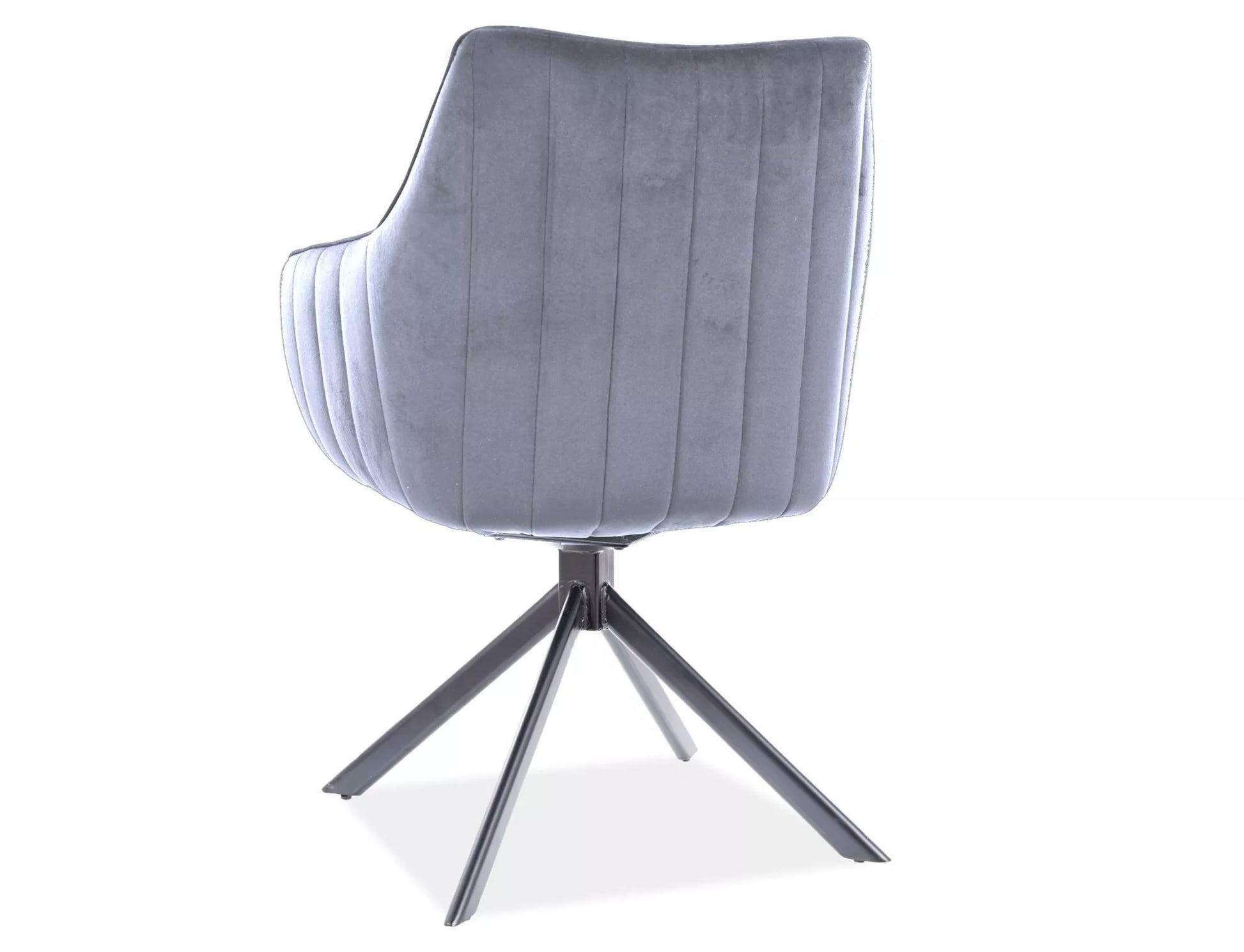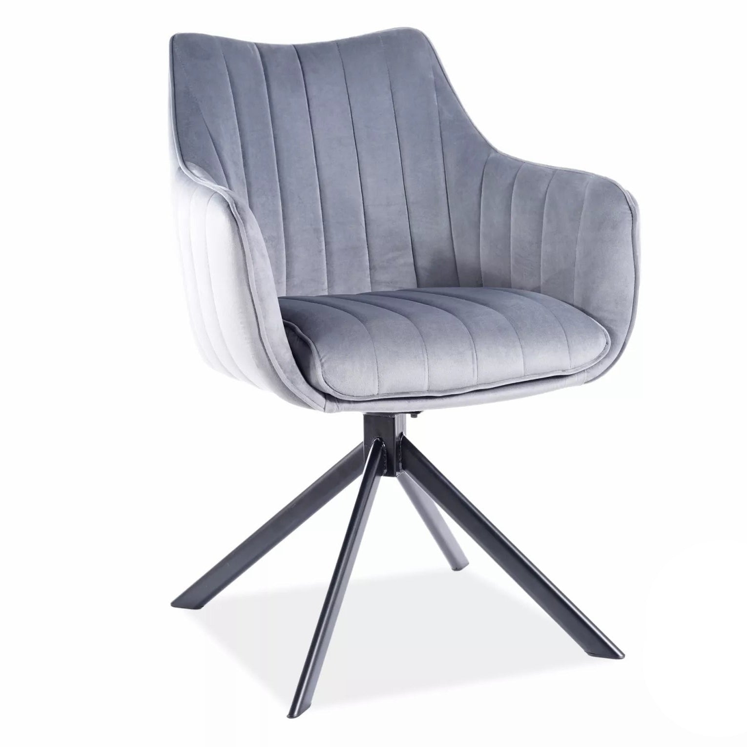 Elegants krēsls no mīksta samta skaistā pelēkā tonī. Masīvs melns rāmis nodrošina stabilitāti un izturību. Izmēri: 86/44/61 cm.