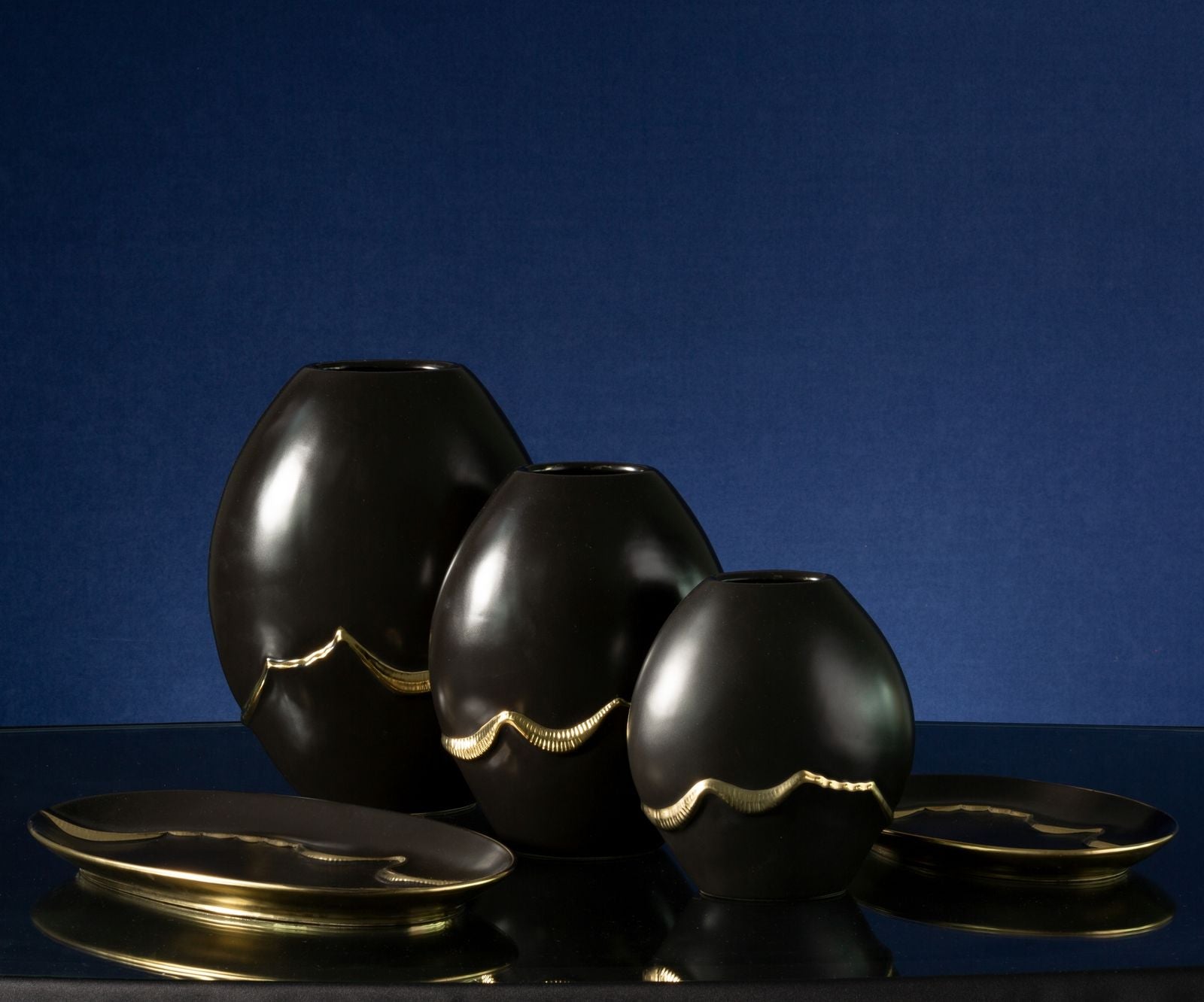 Dekoratīvās vāzes platums: 10 cm, garums: 6 cm, krāsa: melna, sastāvs: keramiskais māls