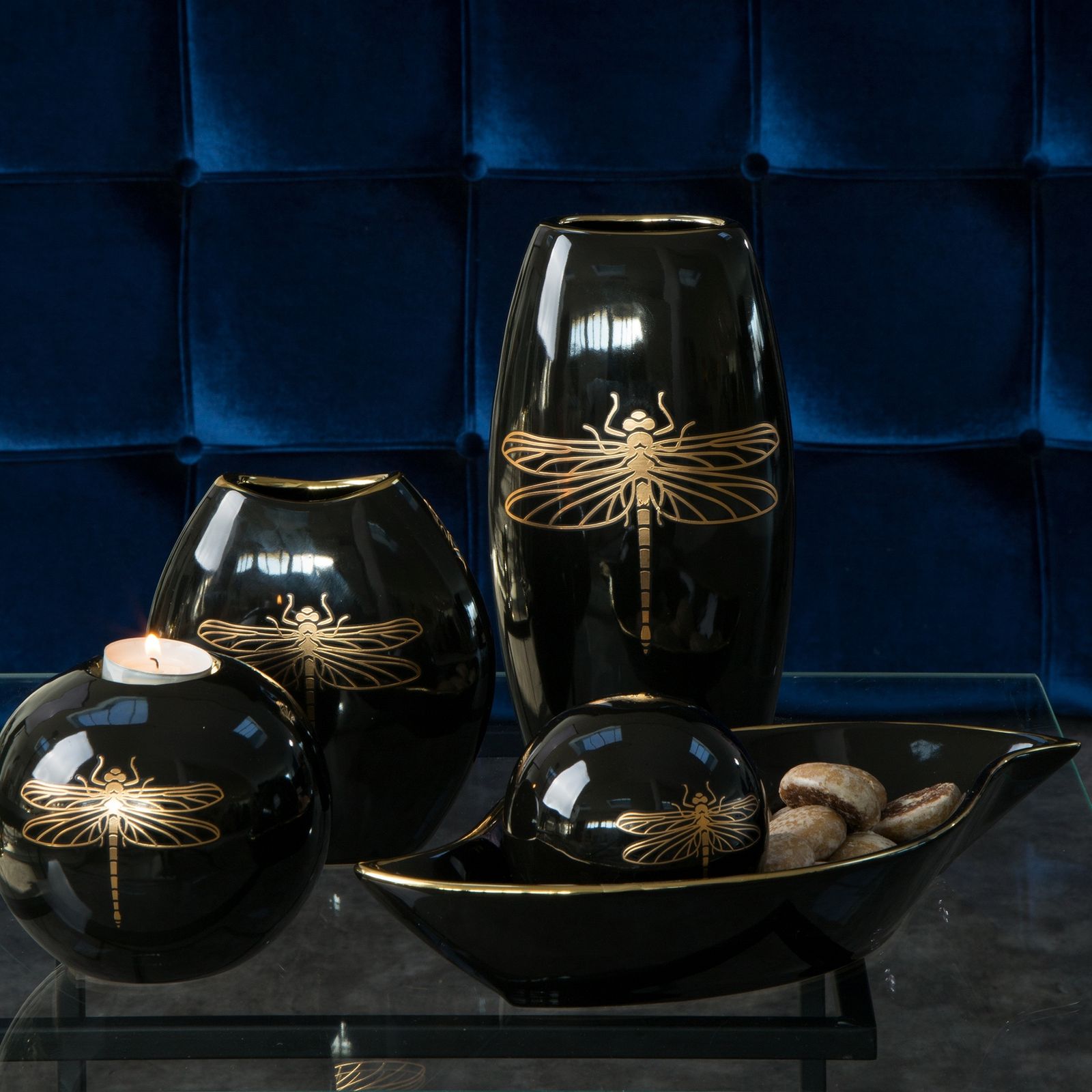 Dekoratīvās vāzes platums: 14 cm, garums: 7 cm, krāsa: melna, sastāvs: keramiskais māls