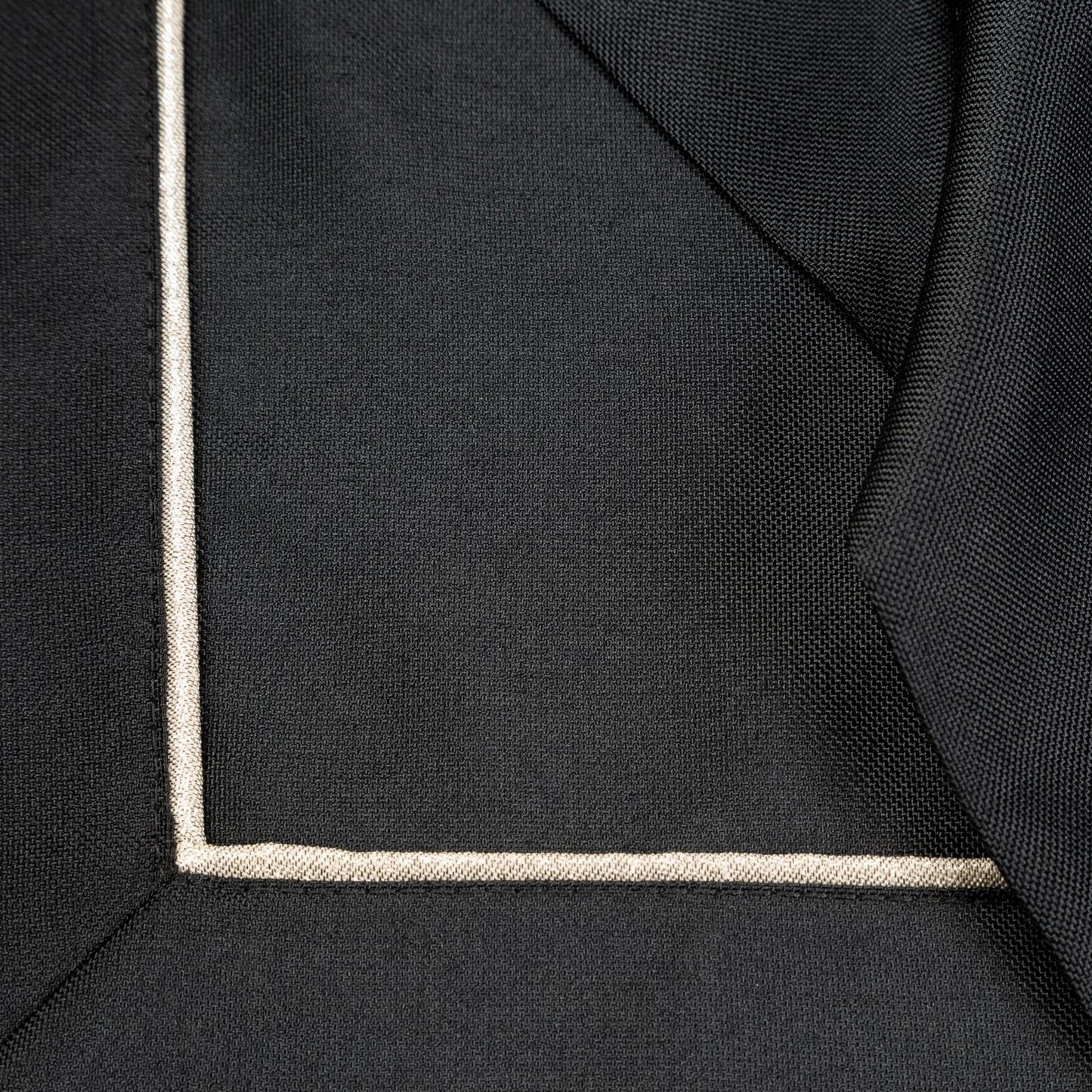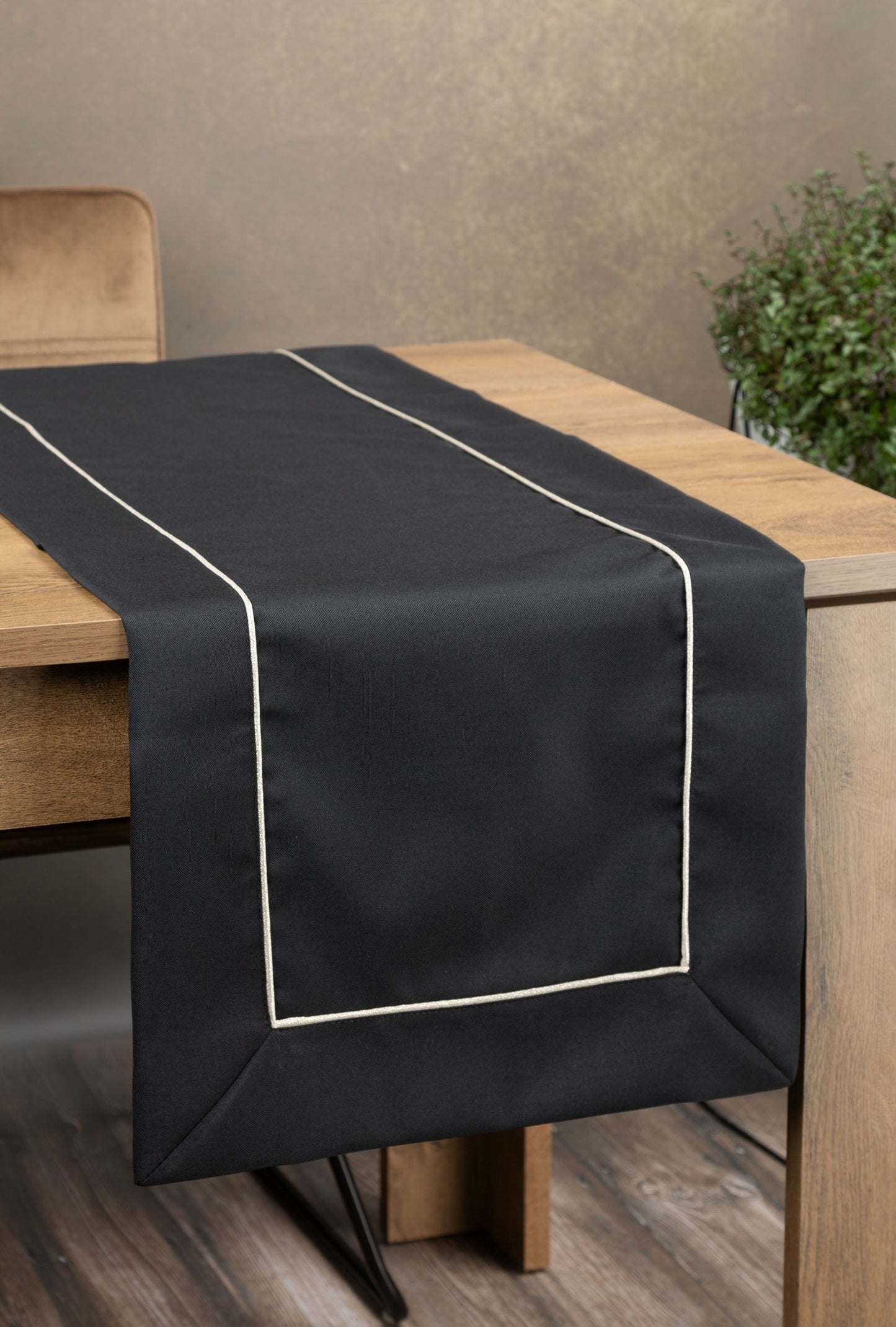 Skrejceļš ar smalku zelta apdari, iepakots elegantā kastē platums: 40 cm, garums: 140 cm, krāsa: melna, svars: 190 GSM, sastāvs: Sastāvs: 100% poliesteris.