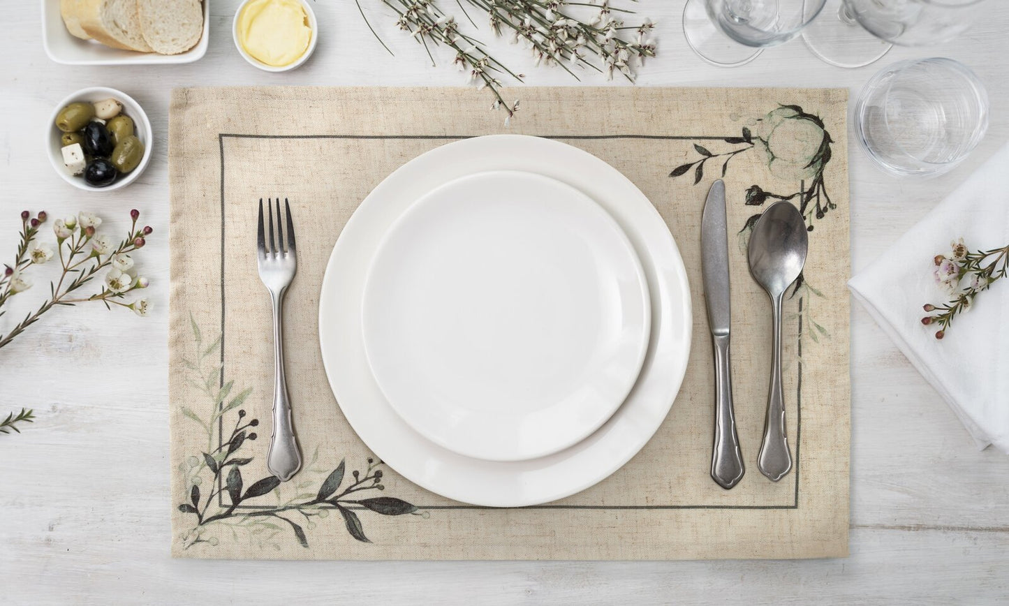 galdauts ar apdrukātu ziedu rakstu platums: 30 cm, garums: 40 cm, krāsa: dabīga, svars: 210 GSM, sastāvs: Sastāvs: 90% poliestera; 10% lina