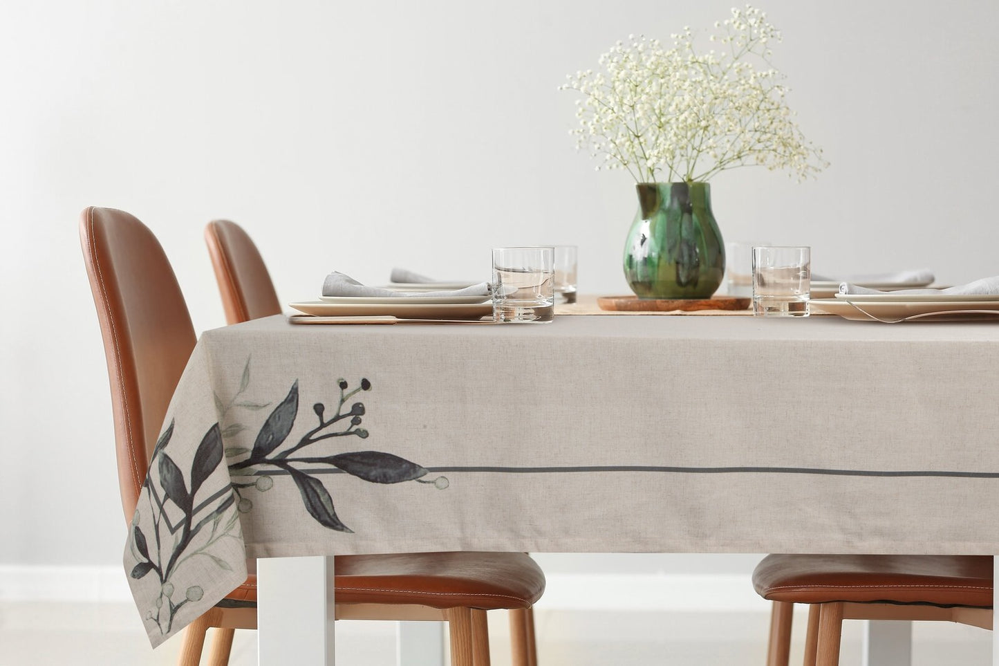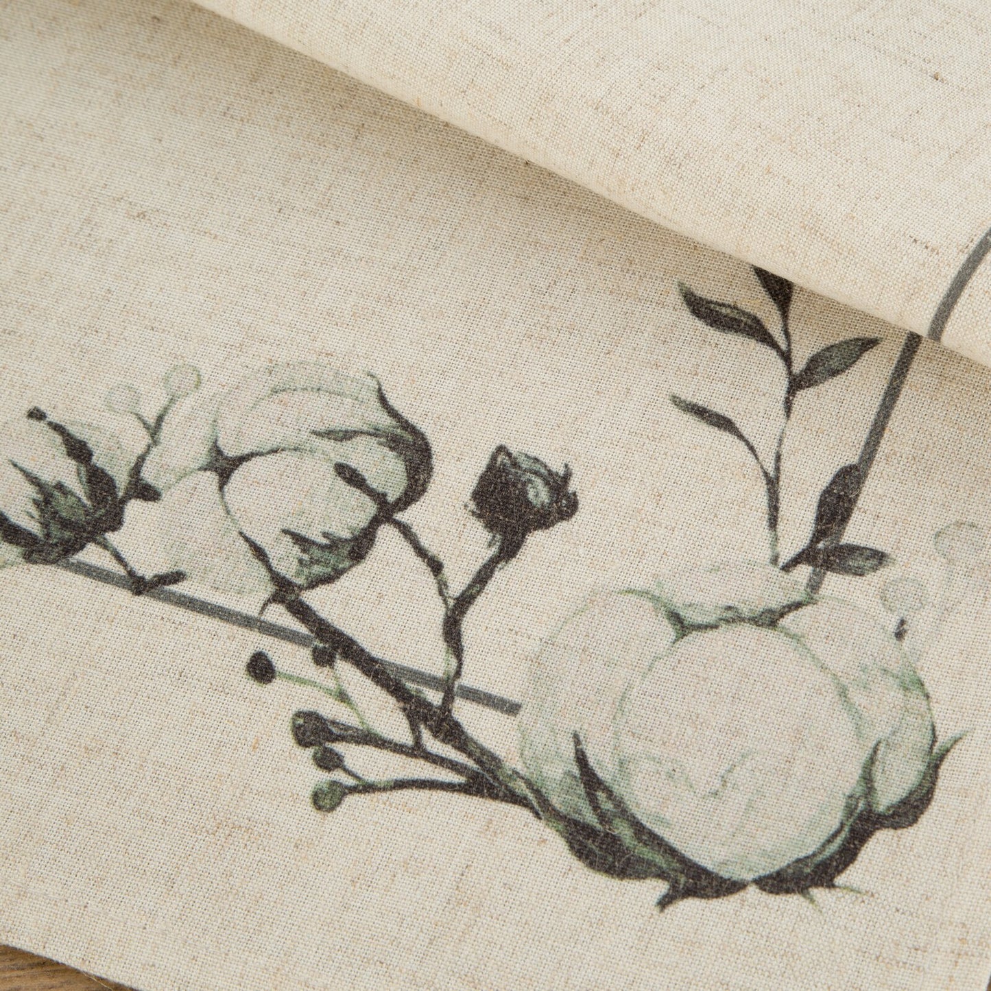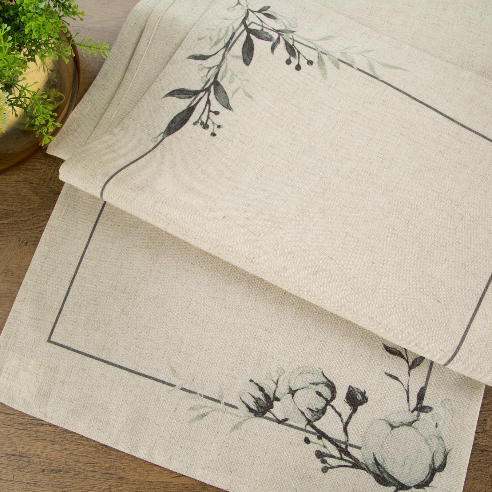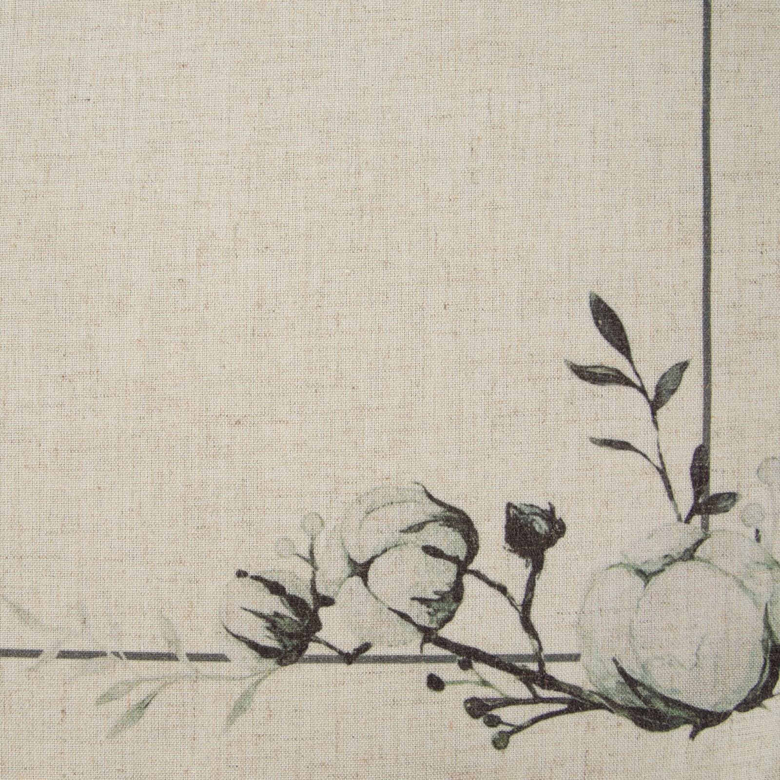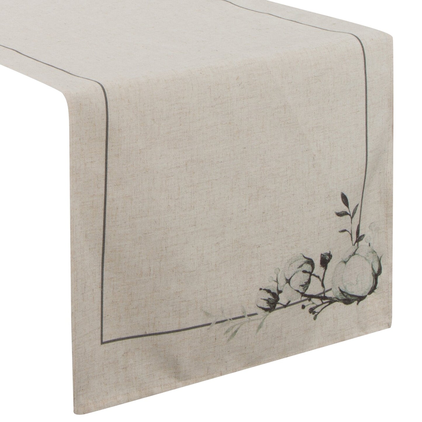 galdauts ar apdrukātu ziedu rakstu platums: 40 cm, garums: 180 cm, krāsa: dabīga, svars: 210 GSM, sastāvs: Materiāls: 90% poliestera; 10% lina.