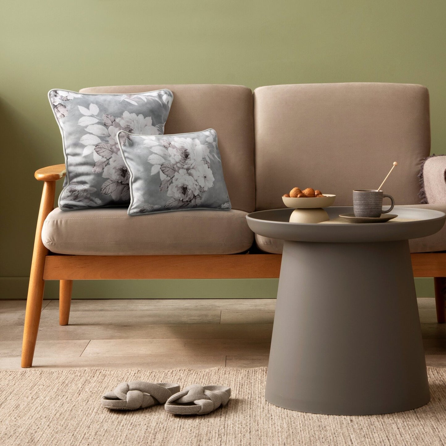 Dekoratīvs samta spilvendrānas pārklājs platums: 45 cm, garums: 45 cm, krāsa: bēša, sastāvs: Sastāvs: 100% poliesteris