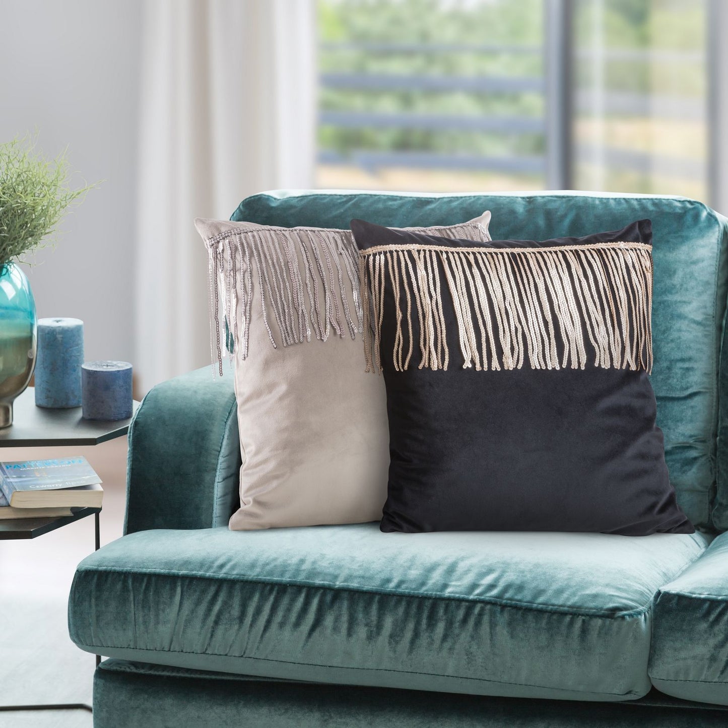 Samta vienkrāsains spilvendrānas pārvalks ar dekoratīvu lenti ar fliteriem platums: 45 cm, garums: 45 cm, krāsa: melna, svars: 290 GSM, sastāvs: Sastāvs: 100% poliesteris