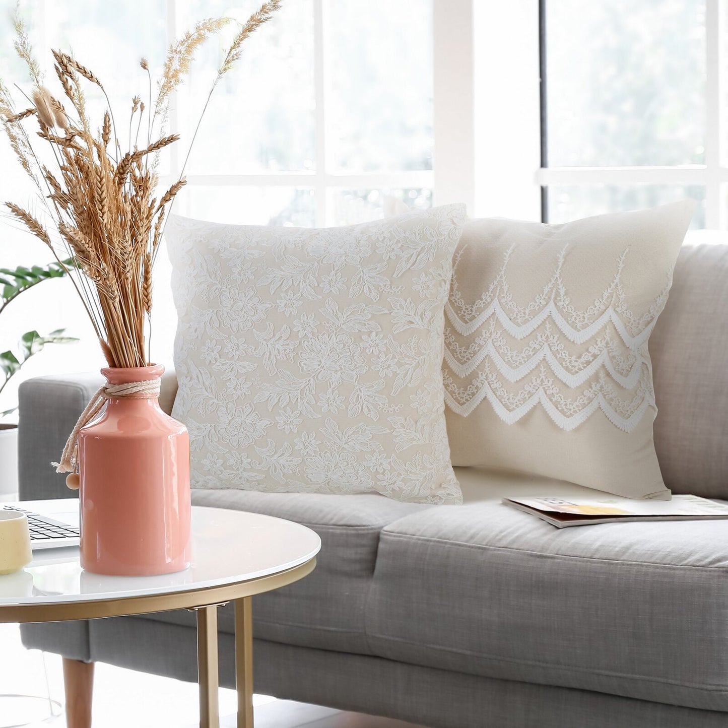 Dekoratīvs eko stila spilvendrānas pārklājs, dekorēts ar mežģīnēm platums: 45 cm, garums: 45 cm, krāsa: dabīga, svars: 230 GSM, sastāvs: Sastāvs: 30 % kokvilnas, 70 % poliestera.