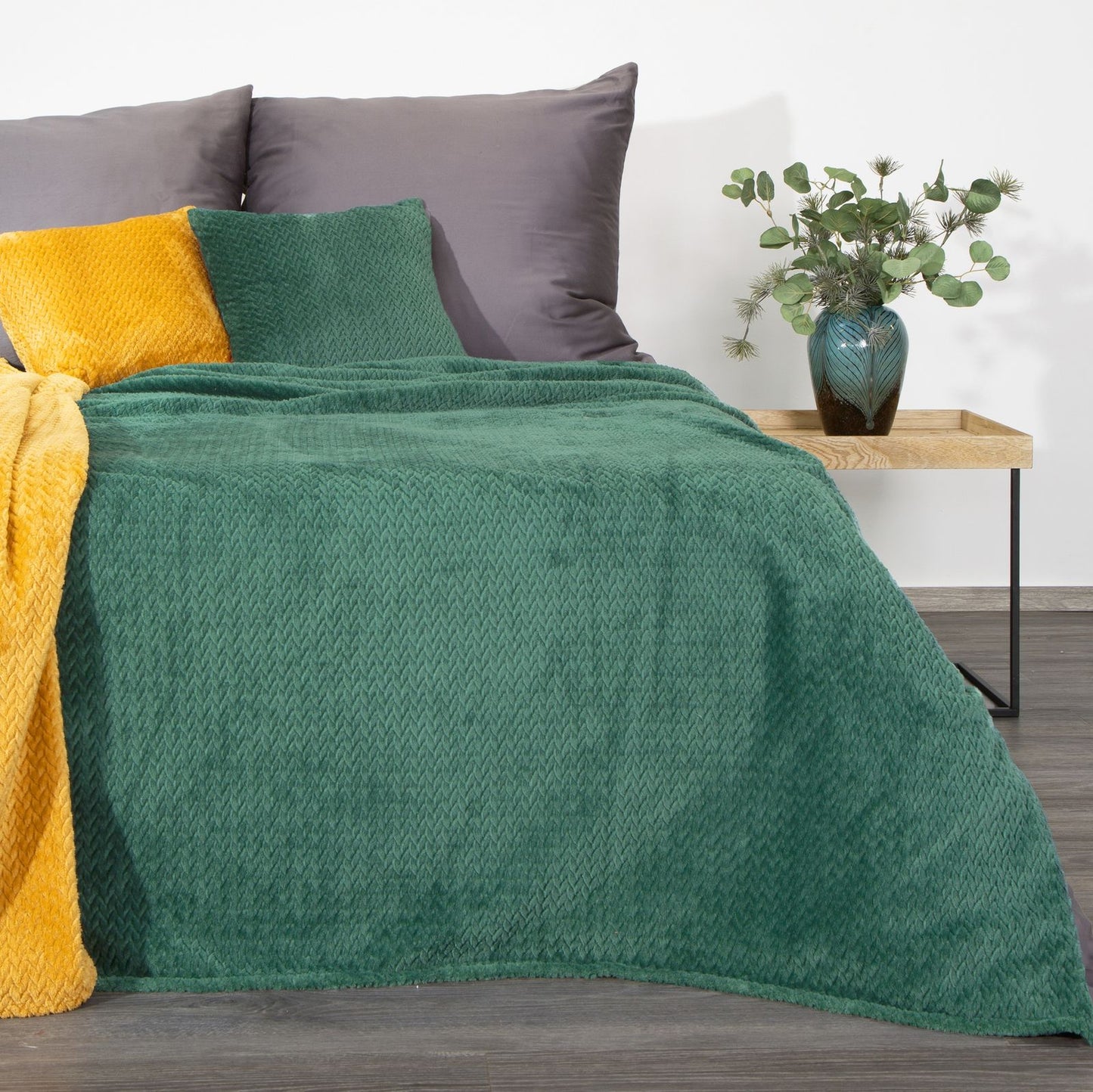 Klasiska sega no patīkamas pieskārienam mikroflano šķiedras. Vienkrāsaino, pūkaino tekstūru rotā minimālistisks siļķes reljefs. platums: 170 cm, garums: 210 cm, krāsa: tumši zaļa, svars: 250GSM GSM, sastāvs: Sastāvs: 100% poliesteris.