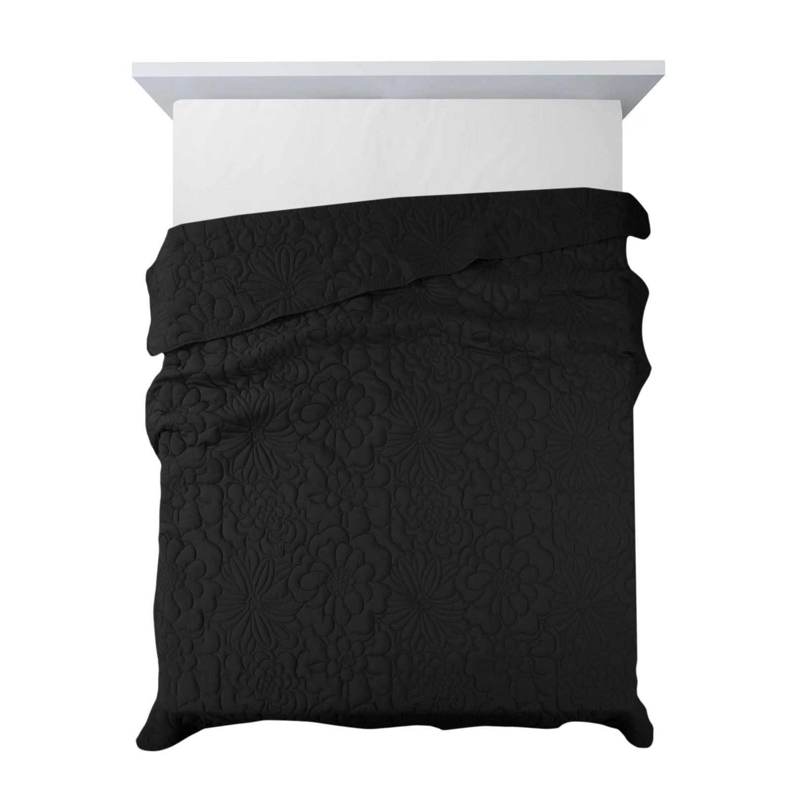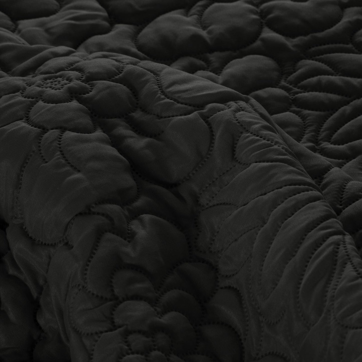 Vienkrāsains gultas pārklājs, izgatavots, izmantojot karstās preses tehnoloģiju Platums: 170 cm, Garums: 210 cm, Krāsa: melna, Svars: 80+120+70 GSM, Sastāvs: Sastāvs: 100% poliesteris.