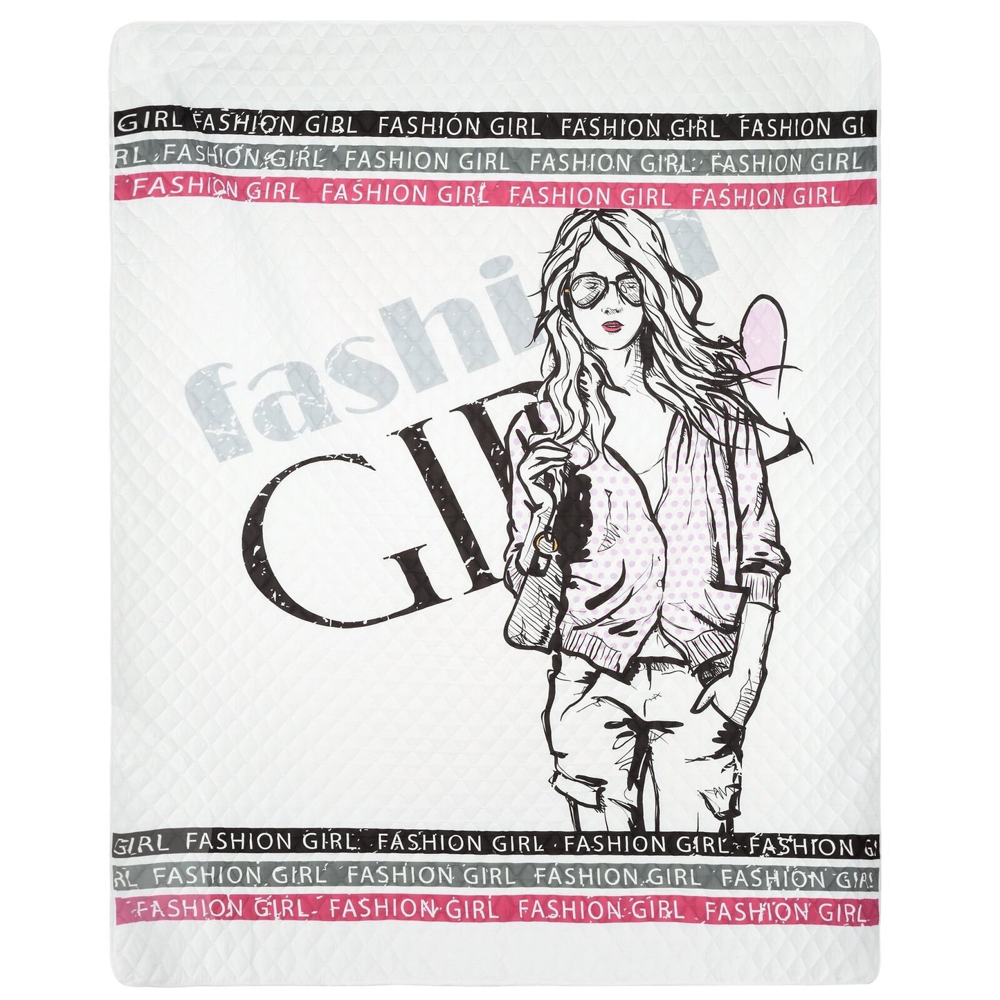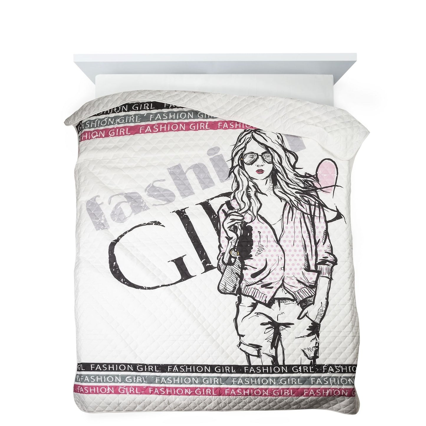 Modes stilā ieturēts mūsdienīgs, moderns gultas pārklājs ar paneļu apdruku. Ideāli piemērots jauniešu istabai. Stepēts, izmantojot bezšuvju karstspiedes metodi, tas ir izturīgs un izturīgs platums: 170 cm, garums: 210 cm, krāsa: balta, svars: 75+75+120 GSM, sastāvs: Sastāvs: 100% poliesteris.