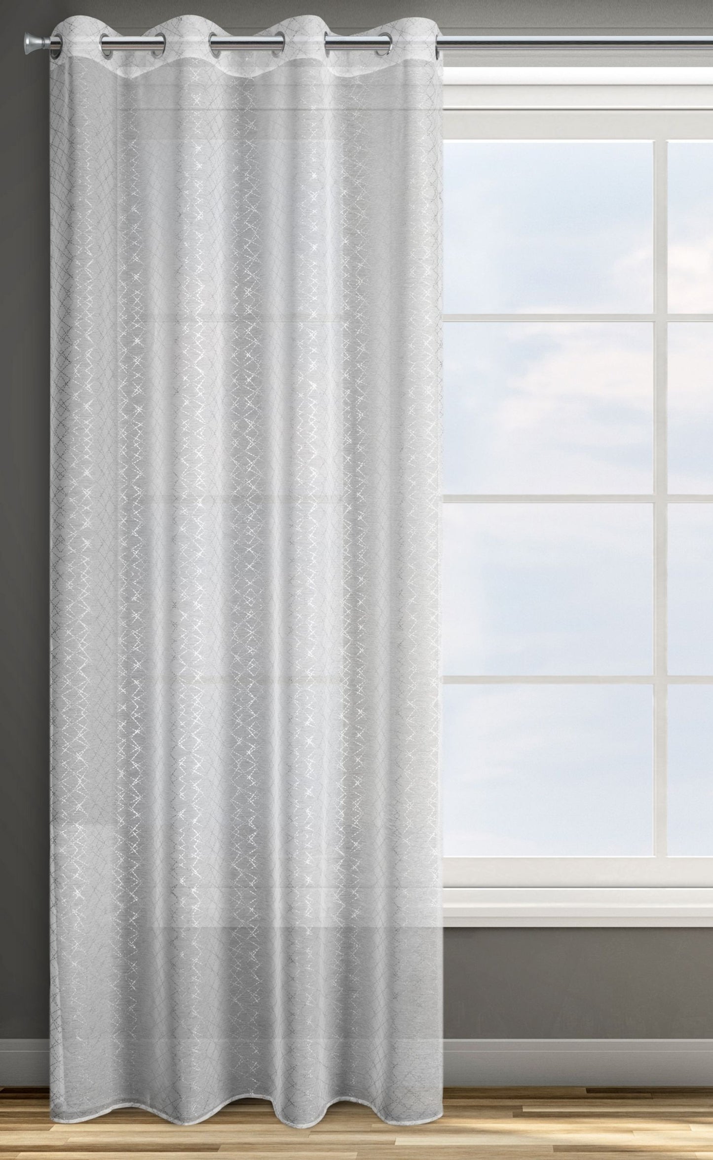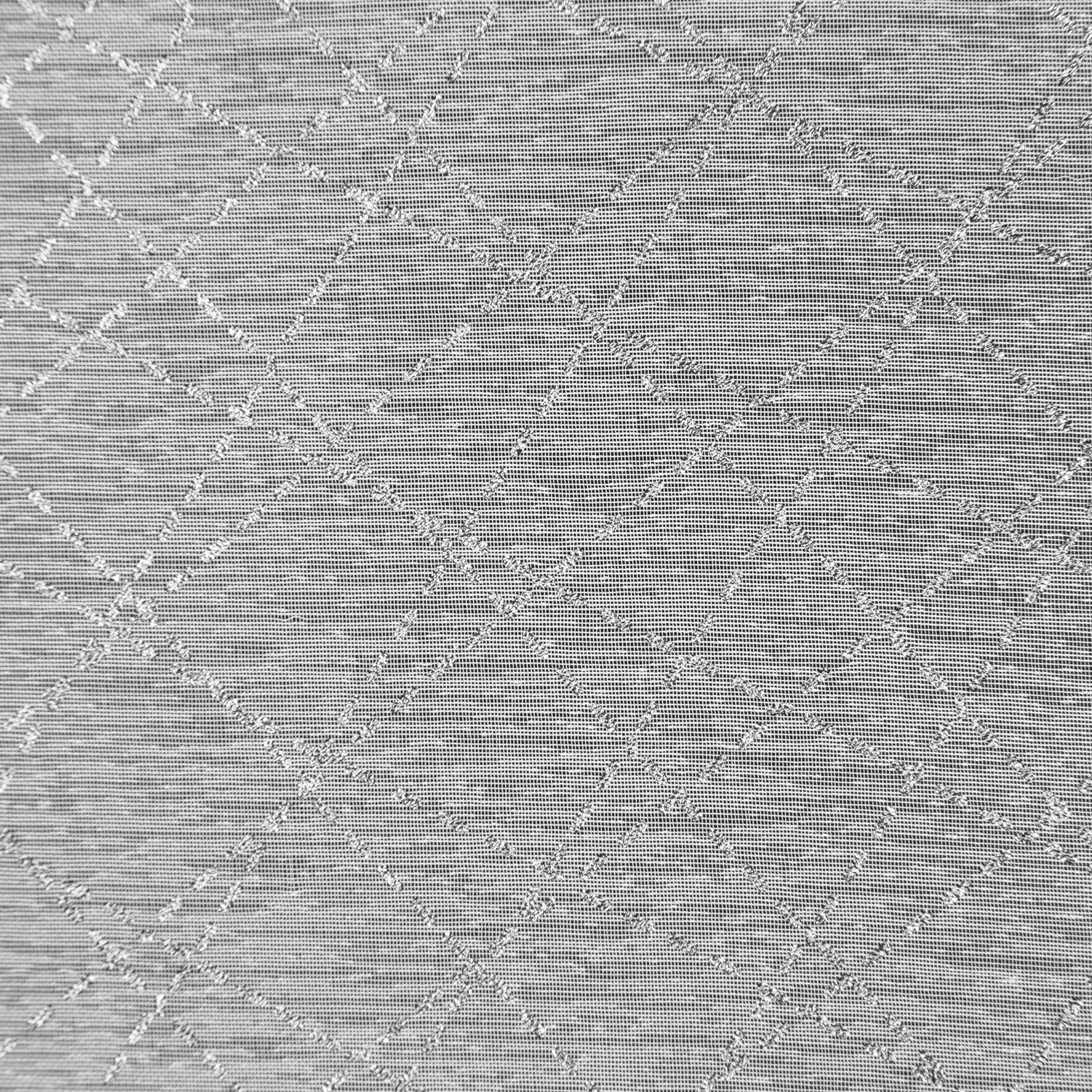 Oriģināls, mūsdienīgs logu rotājums klasiskā baltā krāsā ar smalku sudraba apdruku. Moderns aizkars ar regulāru rakstu. platums: 140 cm, garums: 250 cm, krāsa: balta, svars: 50 GSM, sastāvs: Sastāvs: 100% poliesteris.