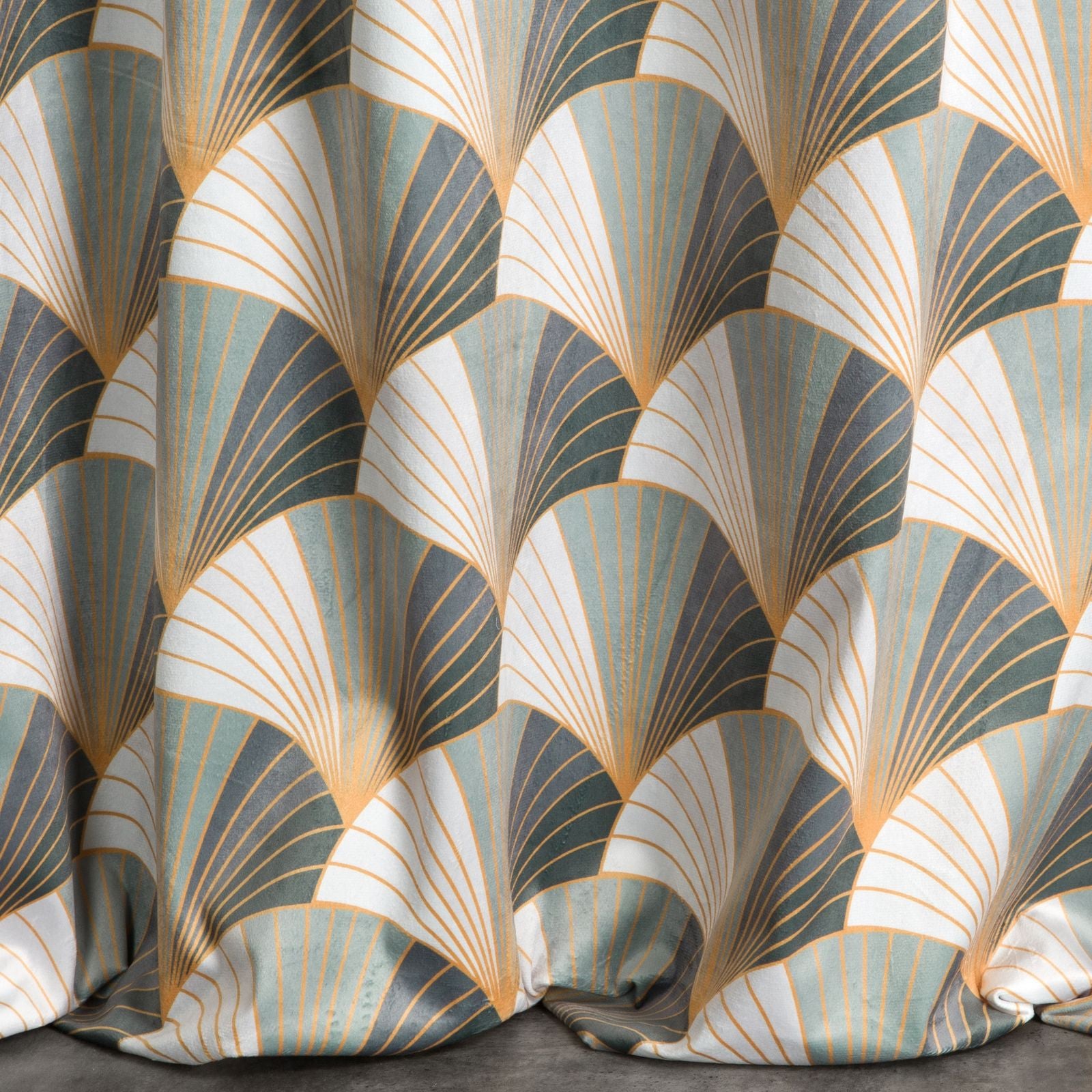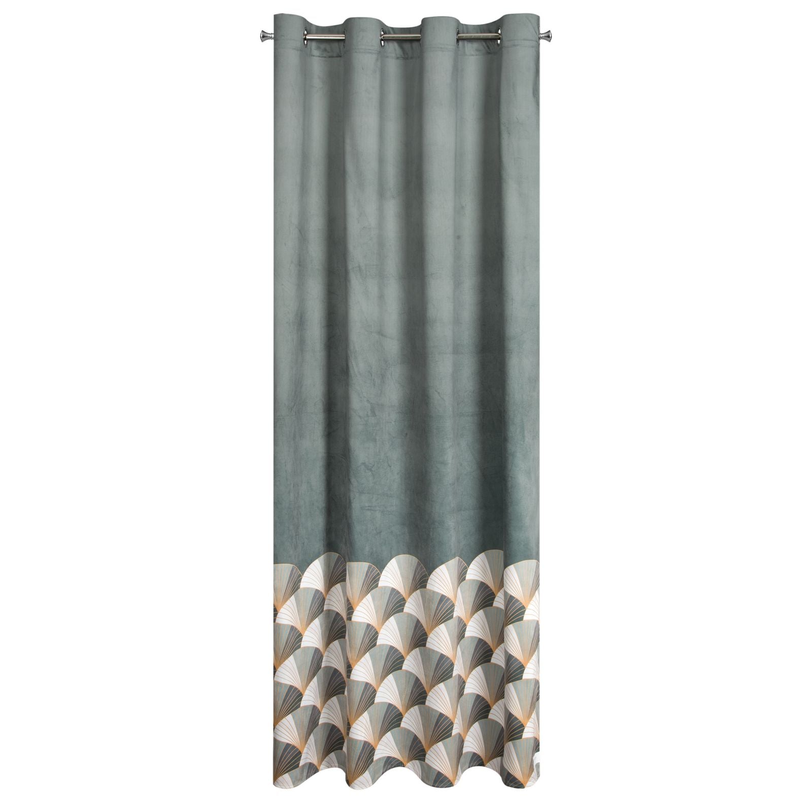 Apdrukāts samta aizkars platums: 140 cm, garums: 250 cm, krāsa: tērauda, svars: 200 GSM, sastāvs: Sastāvs: 100% poliesteris