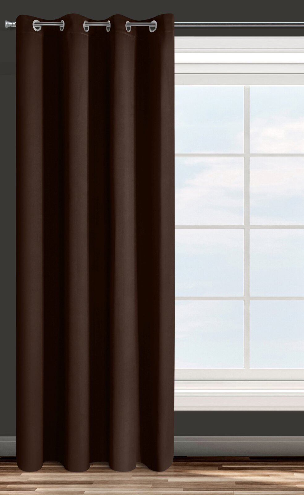 Vienkrāsains aptumšojošs aizkars, platums: 135 cm, garums: 250 cm, krāsa: brūna, svars: 210 GSM, sastāvs: Sastāvs: 100% poliesteris.