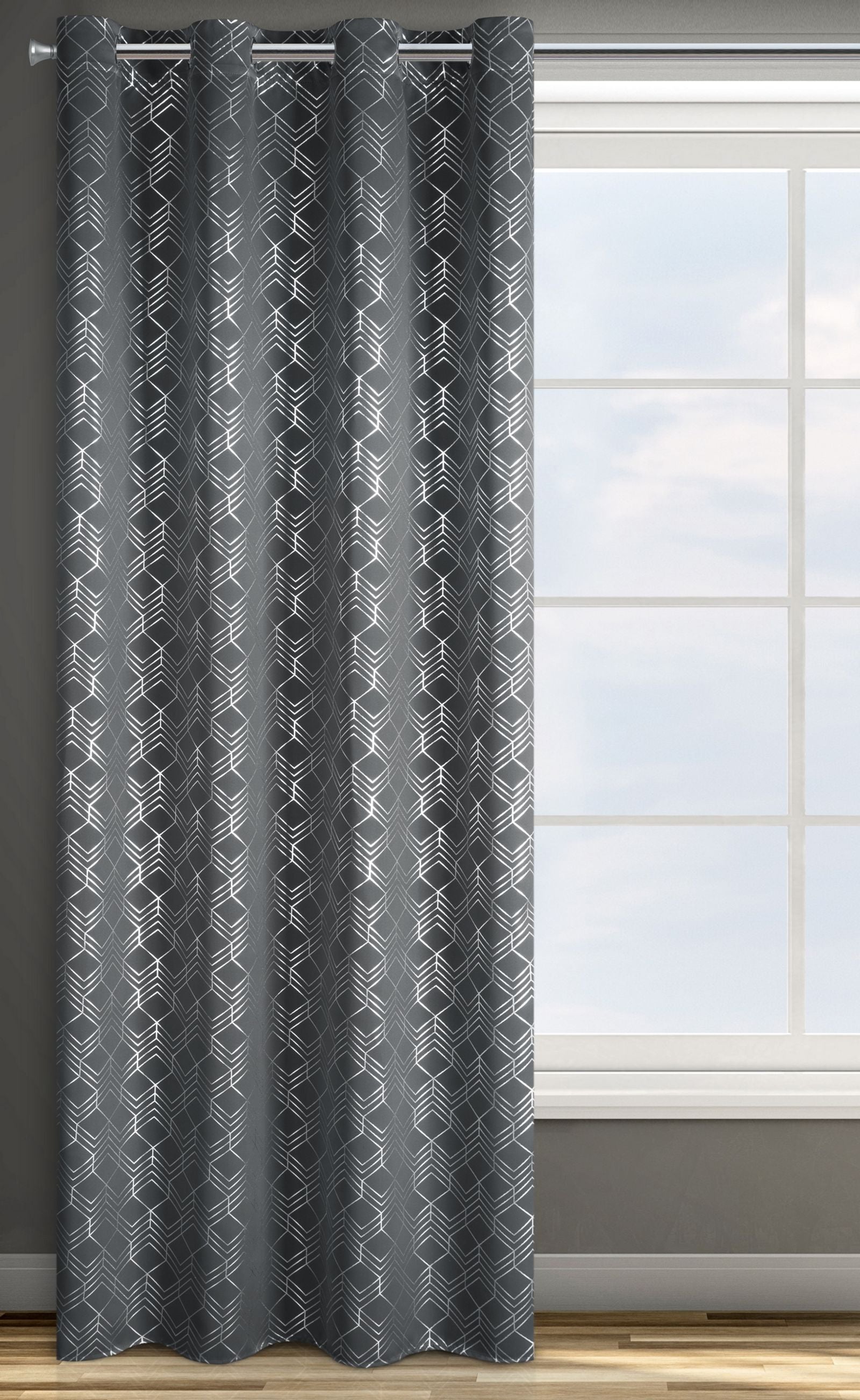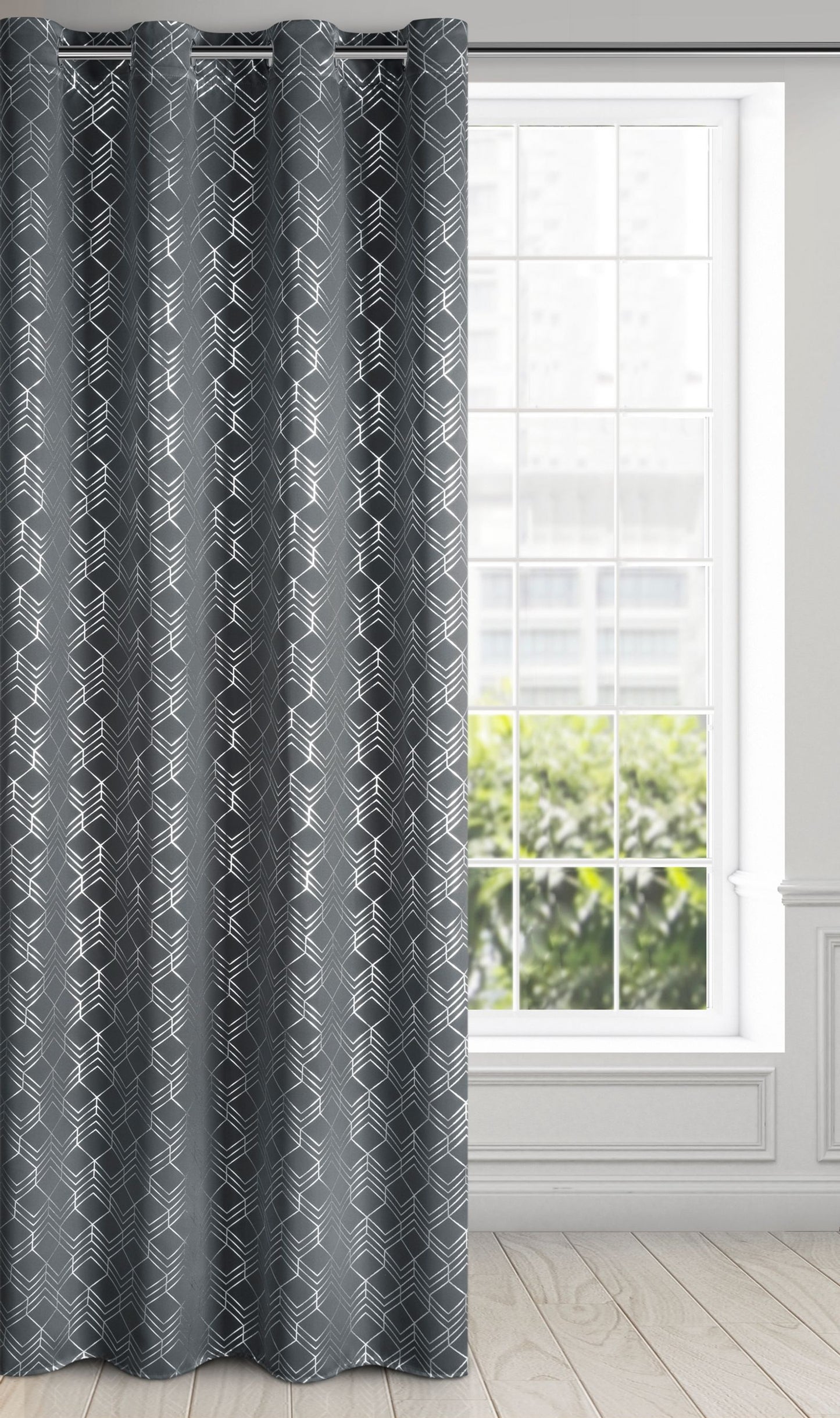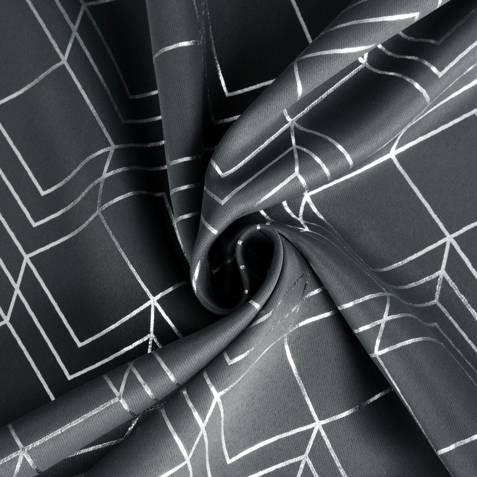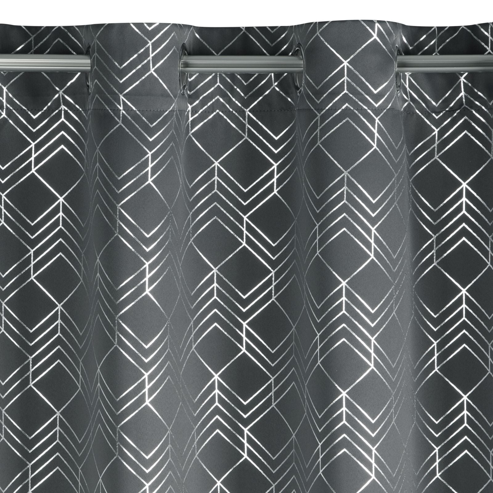Gatavs aptumšojošs aizkars ar sudraba apdruku platums: 140 cm, garums: 250 cm, krāsa: grafīta, svars: 190 GSM, sastāvs: Sastāvs: 100% poliesteris.