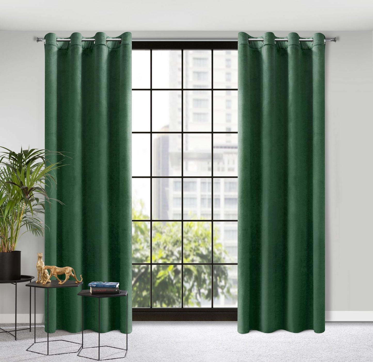 Vienkrāsains samta aizkars platums: 140 cm, garums: 250 cm, krāsa: zaļa, svars: 200 GSM, sastāvs: Sastāvs: 100% poliesteris
