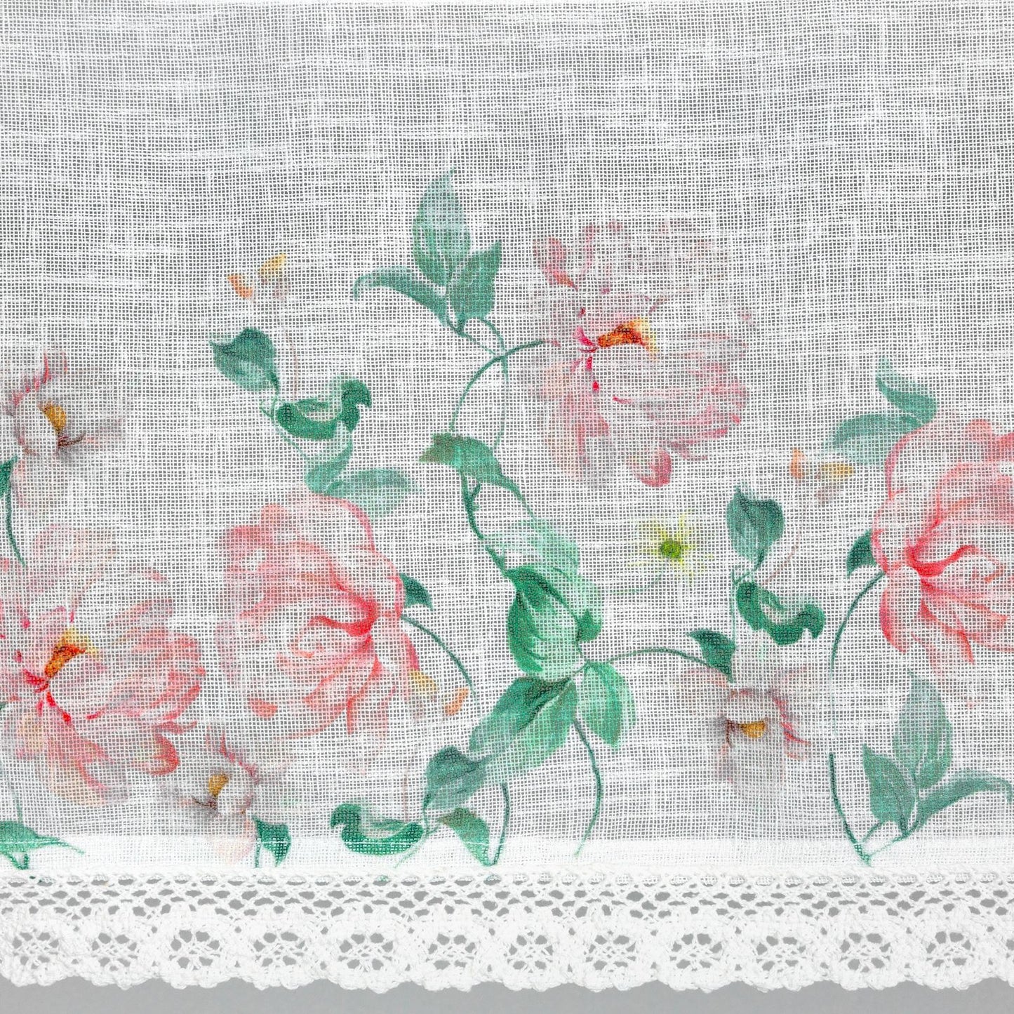 Ar mežģīnēm rotāta apdrukāta gultas pārklāja platums: 150 cm, garums: 30 cm, krāsa: balta, svars: 165 GSM, sastāvs: Sastāvs: 100% poliesteris