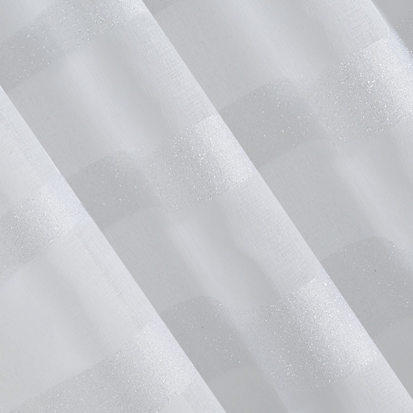 Vienkrāsains, gaisīgs aizkars, kas izgatavots no etamīna un apakšā rotāts ar horizontālām mohēras diegu lentēm. Ļoti viegls un vienkāršs. Viegli gludināms. Platums: 140 cm, garums: 250 cm, krāsa: balta, svars: 75 GSM, sastāvs: Sastāvs: 100% poliesteris.