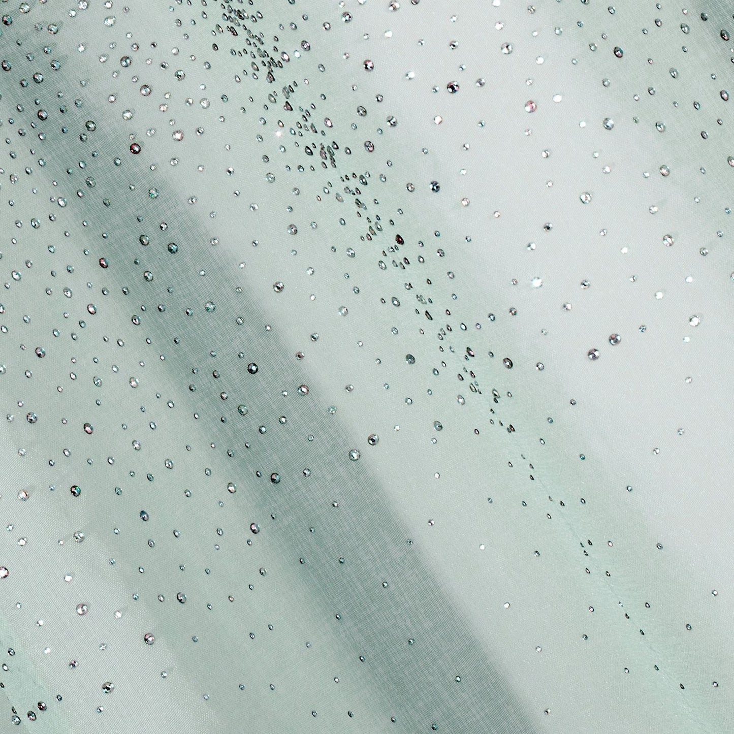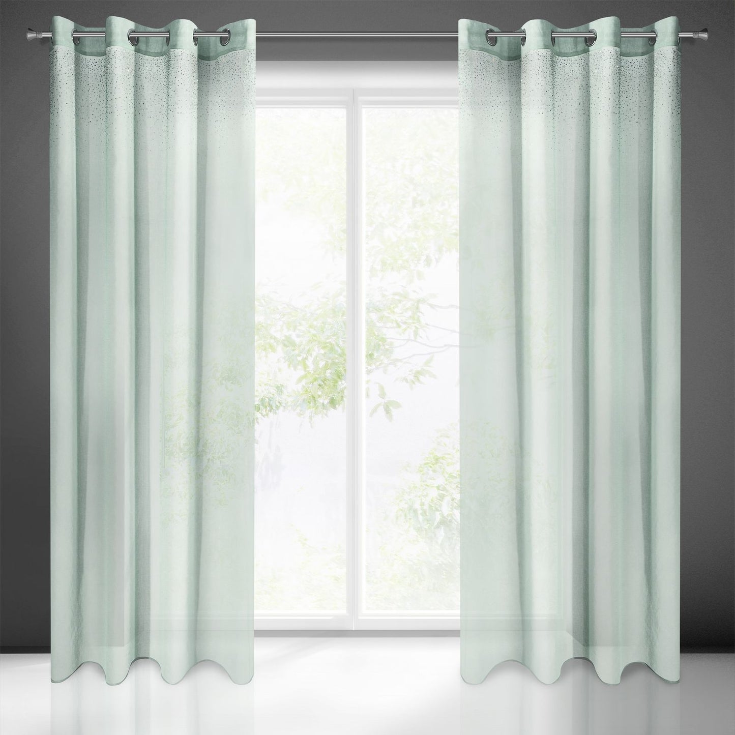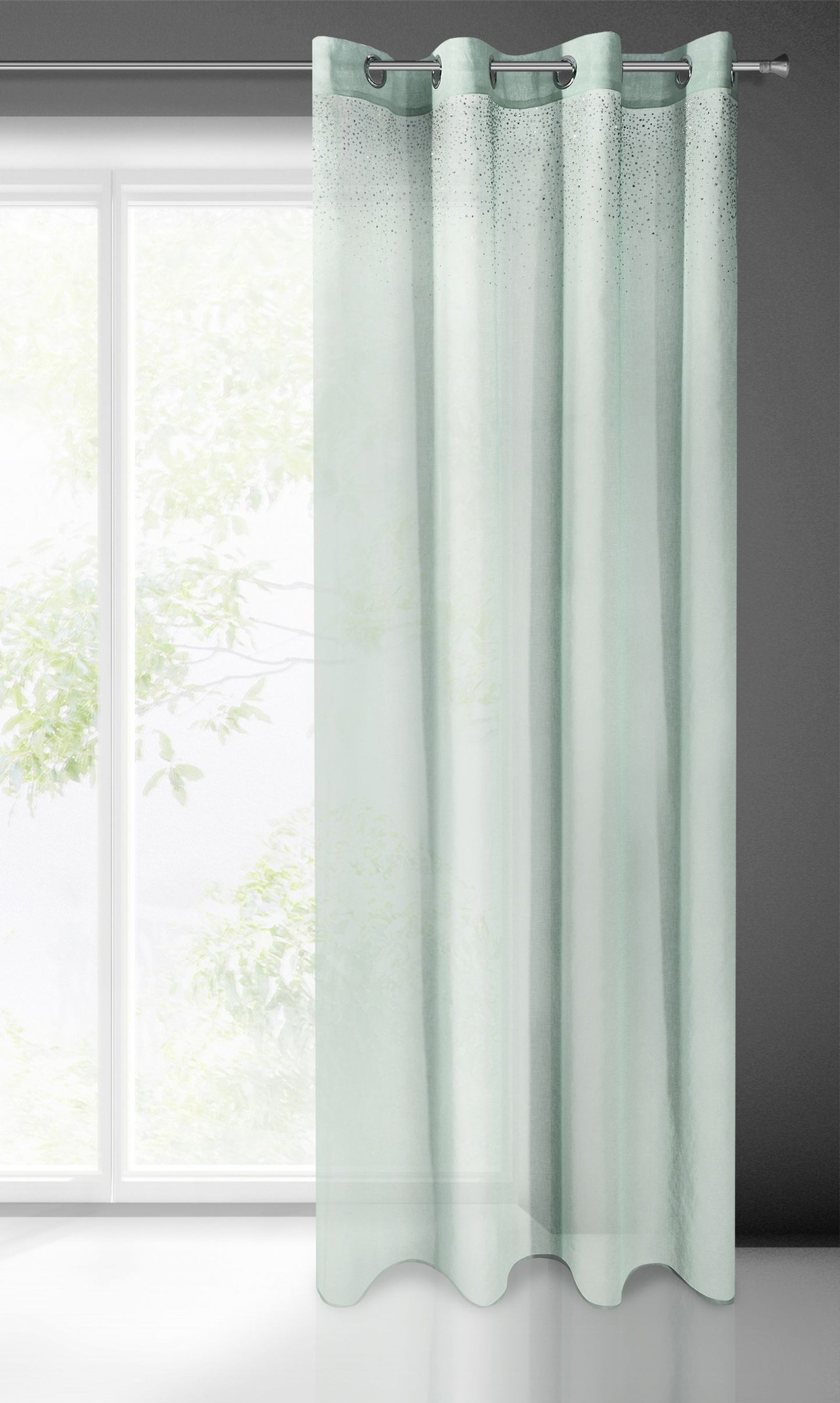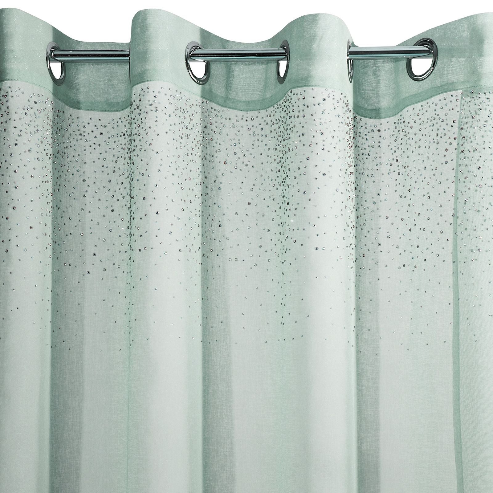 Delikāts, daļēji caurspīdīgs aizkars, kas izgatavots no mīksta auduma un rotāts ar kristālu dušu augšējā daļā. Platums: 140 cm, garums: 250 cm, krāsa: piparmētra, svars: 70 GSM, sastāvs: 70 GSM, materiāls: kristāli: Sastāvs: 100% poliesteris.