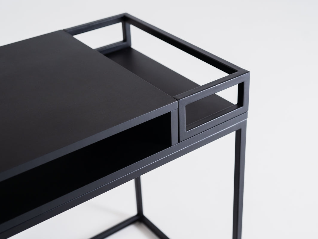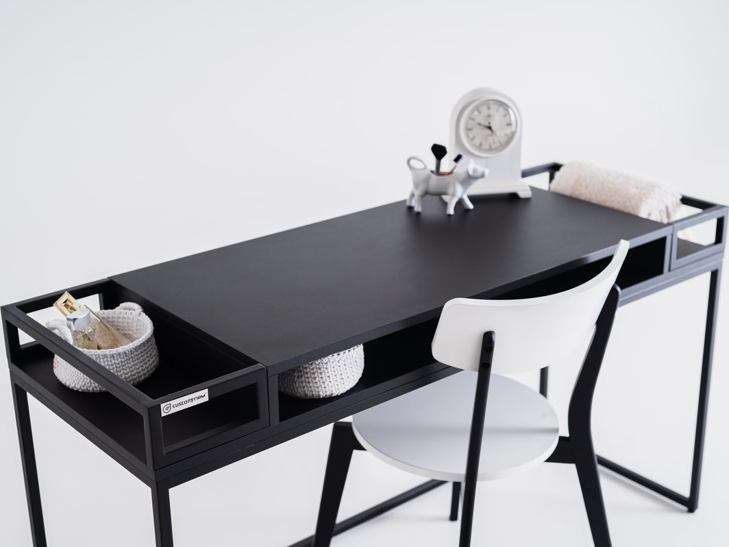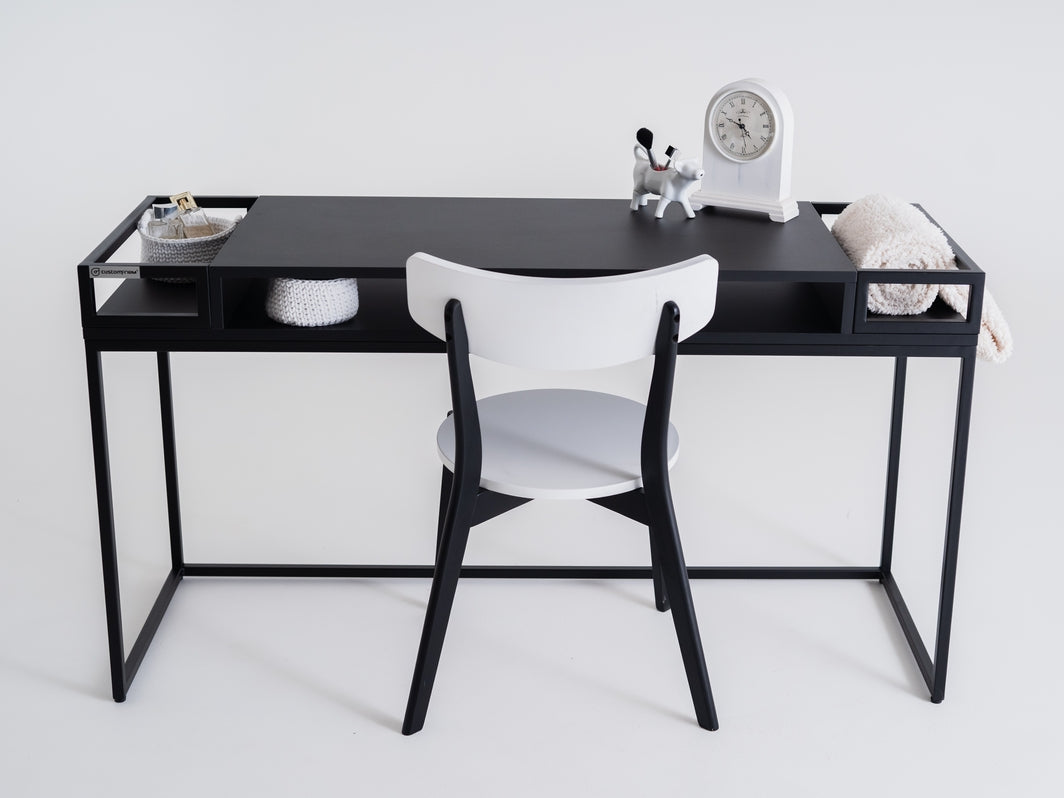 Ērts un skaists GLAMM dizaina tualetes galdiņš. Lielas uzglabāšanas iespējas ļauj atbrīvot vannas istabu, kas bieži vien nav pārāk liela. Galda virsmas darba telpa ļauj izkārtot visas nepieciešamās otas un kosmētiku, lai veiktu perfektu grimu. Virs tualetes galdiņa var iekārt spoguli, pievienot apgaismojumu un justies kā profesionālā garderobē. GLAMM tualetes galdam ir metāla konstrukcija, virsma ir izgatavota no augstas kvalitātes laminētas mēbeļu plāksnes. Sānu malās ir simetriski padziļinājumi, kas kalpos kā papildu plaukti. Vai vēlaties tur novietot puķes? Kosmētikas otu trauku? Kafijas tasīti? Nekādu problēmu. Mūsu GLAMM tualetes galdiņš, tāpat kā citas dizaina biroja mēbeles, izskatās iespaidīgi, bet vienlaikus ir arī praktisks. Zem augšdaļas ir divas atvērtas atvilktnes, kurās var glabāt rotaslietu kastītes vai vienkārši dokumentus, jo GLAMM tualetes galdiņu var izmantot arī kā rakstāmgaldu. Tualetes galdiņa novietošana guļamistabā būs ne tikai praktiska, bet kalpos arī kā dekors. Pietiek izvietot skaistas smaržu pudelītes vai dekoratīvus nieciņus. GLAMM tualetes galdiņš būs veiksmīgs tualetes galdiņš pusaudzim, turklāt tas var būt arī rakstāmgalds. Mūsu dizaina mēbeles jūs varat apskatīt dzīvajā ekspozīcijā. Chorzovas mēbeļu veikals ir atvērts ikvienam, kam patīk pieskarties, pārbaudīt un apsēsties. Šeit jūs varēsiet izmēģināt ne tikai mūsu rakstāmgaldu, bet arī citas biroja un bēniņu mēbeles: dizaina stāvlampas, industriālās griestu lampas, dizaina dīvānus un citas dizaina biroja mēbeles. Mēs aicinām!