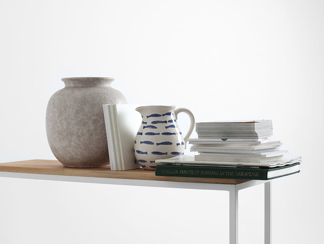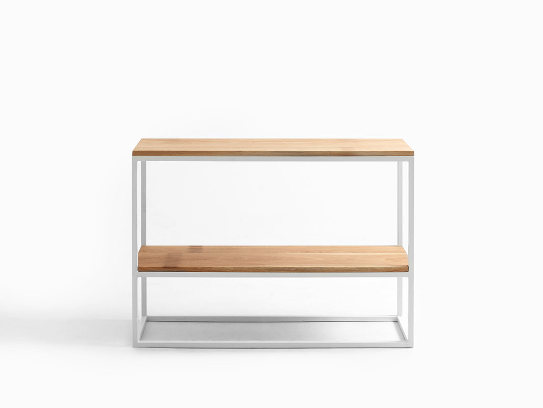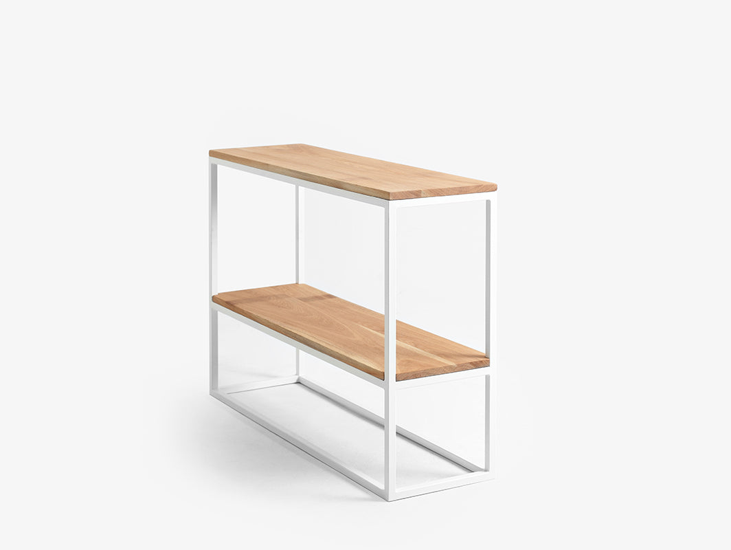 Grāmatas, filmas, žurnāli, sīkrīki un citi mazi elementi ir mūsu mazie dārgumi. Ir labi tos novietot stratēģiski svarīgā vietā dzīvoklī - tepat rokas stiepiena attālumā. Julita Masīvkoka konsoles galdiņš, kas ir vienkāršs savā formā, praktisks un stilīgs, labprāt uzņemsies šo uzdevumu. Novietojiet to blakus iecienītākajam krēslam vai pie kafijas automāta. Efekts? Tas būs praktiski un estētiski, un ļoti tuvu. Jūsu rokas stiepiena attālumā. Priekšmeti ir svarīgi. Grāmatas, filmas, drēbes, sīkrīkus - mēs tos uz mūžu glabājam grāmatu plauktā. Tās ir mūsu pasaule, ikdiena, tās liecina par mums. Tāpēc ir žēl tās iespiest stūrī, īpaši tās vērtīgās vai vismīļākās. Moderns konsoles vai metāla grāmatu plaukts, pateicoties tiem, visi svarīgie priekšmeti ne tikai atradīs savu vietu, bet arī lieliski sevi prezentēs. Mēs piedāvājam dažādas industriālās metāla mēbeles glabāšanai - mūsu plaukti ir ar rokām darinātas mēbeles, atcerieties retro stilu un sajūtiet skandināvu stilu, praktiskas, skaistas un oriģinālas. Nāciet, glābiet savu pasauli. Julita ir radīta ērtai ikdienas priekšmetu lietošanai un patīkamai, vienkāršai formai. Mūsu konsolei ir vismaz četras funkcijas - tā kalpos kā galds, uzglabās nepieciešamo, parādīs, kas jums ir, un tā labi izskatās. Tās vienkāršā forma un vieglā konstrukcija ļauj Julita viegli iekļauties jebkurā vidē - neatkarīgi no stila, kādā tā ir iekārtota. Tās stabilais pamats ir pulverkrāsots visās iespējamās krāsās atkarībā no mūsu klientu gaumes un vajadzībām. Savukārt tās galda virsmas ir izgatavotas no ozolkoka, kas kombinācijā ar metāla rāmi rada klasikas un modernitātes apvienojuma efektu. Uz galda virsmas novietotajiem priekšmetiem, piemēram, vāzēm ar ūdeni, ieteicams izmantot paplāksnes. PIEZĪME! Izvēlieties sev piemērotāko krāsu! Pieejamās krāsas skatiet sadaļā CUSTOMIZE / DESIGN.
