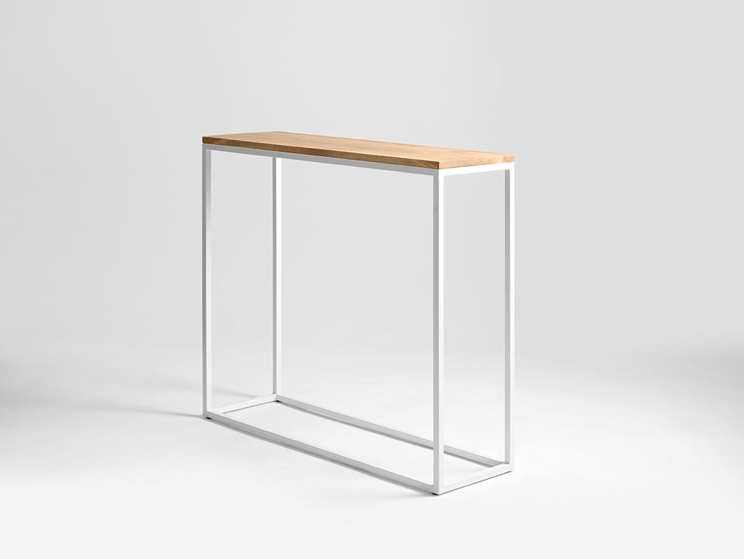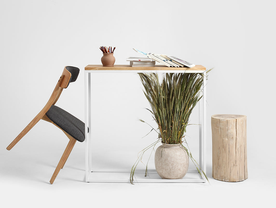 Grāmatas, filmas, žurnāli, sīkrīki un citi mazi elementi ir mūsu mazie dārgumi. Ir labi tos novietot stratēģiski svarīgā vietā dzīvoklī - turpat rokas stiepiena attālumā. Julita Masīvkoka konsoles galdiņš, kas ir vienkāršs savā formā, praktisks un stilīgs, labprāt uzņemsies šo uzdevumu. Novietojiet to blakus iecienītākajam krēslam vai pie kafijas automāta. Efekts? Tas būs praktiski un estētiski, un ļoti tuvu. Jūsu rokas stiepiena attālumā. Priekšmeti ir svarīgi. Grāmatas, filmas, drēbes, sīkrīkus - mēs tos uz mūžu glabājam grāmatu plauktā. Tās ir mūsu pasaule, ikdiena, tās liecina par mums. Tāpēc ir žēl tās iespiest stūrī, īpaši tās vērtīgās vai vismīļākās. Moderns konsoles vai metāla grāmatu plaukts, pateicoties tiem, visi svarīgie priekšmeti ne tikai atradīs savu vietu, bet arī lieliski sevi prezentēs. Mēs piedāvājam dažādas industriālās metāla mēbeles glabāšanai - mūsu plaukti ir ar rokām darinātas mēbeles, atcerieties retro stilu un sajūtiet skandināvu stilu, praktiskas, skaistas un oriģinālas. Nāciet, glābiet savu pasauli. Julita ir radīta ērtai ikdienas priekšmetu lietošanai un patīkamai, vienkāršai formai. Mūsu konsolei ir vismaz četras funkcijas - tā kalpos kā galds, uzglabās nepieciešamo, parādīs, kas jums ir, un tā labi izskatās. Tās vienkāršā forma un vieglā konstrukcija ļauj Julita viegli iekļauties jebkurā vidē - neatkarīgi no stila, kādā tā ir iekārtota. Tās stabilais pamats ir pulverkrāsots visās iespējamās krāsās atkarībā no mūsu klientu gaumes un vajadzībām. Savukārt tās galda virsmas ir izgatavotas no ozolkoka, kas kombinācijā ar metāla rāmi rada klasikas un modernitātes apvienojuma efektu. Uz galda virsmas novietotajiem priekšmetiem, piemēram, vāzēm ar ūdeni, ieteicams izmantot paplāksnes. PIEZĪME! Izvēlieties sev piemērotāko krāsu! Pieejamās krāsas skatiet sadaļā CUSTOMIZE / DESIGN.