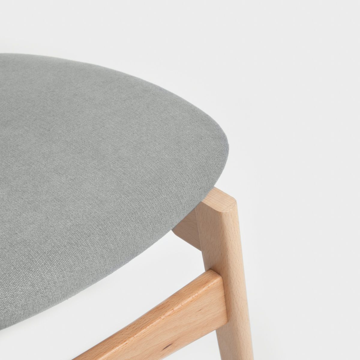 Materiāls Krēsls ir izgatavots no augstas kvalitātes dižskābarža koka, nodrošinot izturību un stabilitāti. Polsterētais pelēkais sēdeklis ir ne tikai estētiski pievilcīgs, bet arī ērts un viegli tīrāms, padarot to par ideālu izvēli ikdienas lietošanai. Papildinformācija Svars: 5,25 kg Augstums no zemes līdz sēdeklim: 45 cm