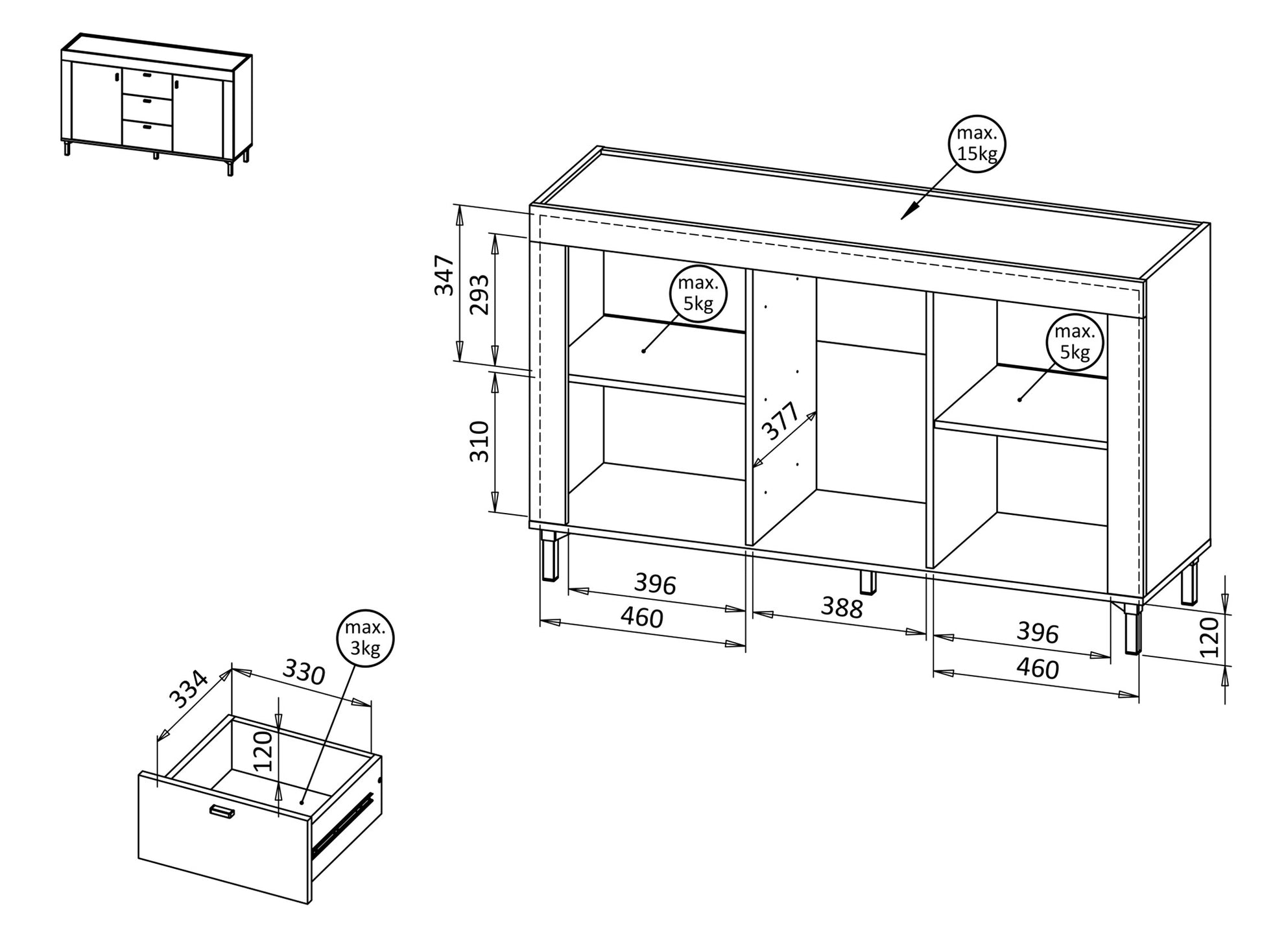 Kumode Lamos 130/77/38 cm bēšs/zelts