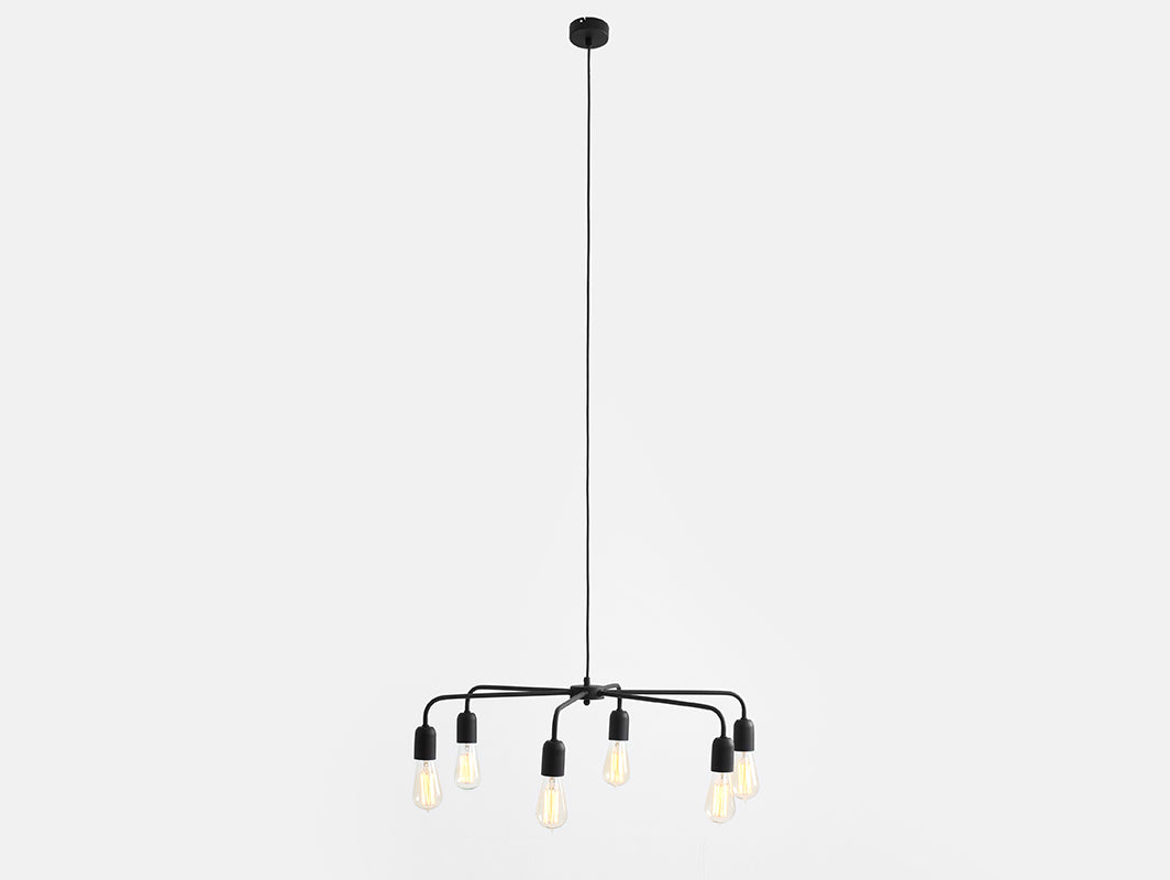 Laikam atbilstoša lustra. Futūristiska, industriāla, minimālisma stila. Lustra Croser - sešas melnas sviras ar lielām, iespaidīgām spuldzēm. Nekādu lieku detaļu, tīra klase un simetrija. Un spēcīga gaisma. Lampa - privātās gaismas avots, nav nekā labāka par dizaineru lampu atmosfēras meistaru, risinājums pēc iespējas spilgtāks. Mums ir daudz veidu, kā izgaismot jūsu interjeru: dizaina piekaramie gaismekļi, stāvlampas, sienas lampas, plafoni un dizaina galda lampas. Pieejami dažādi stili, piemēram, industriālās lampas vai koka lampas. Lampas. Jūs nevarat būt gaišākas. Lustra pilsētas iedzīvotājiem. Croser lustra ir vislabāk piemērota industriālajam dizainam. Tā ir ideāli piemērota kā spēcīgs papildinājums minimālisma un modernisma iekārtai. Tās robustā kompozīcija skaidri izceļas uz monotonu sienu fona, piešķirot interjeriem izteiksmīgumu. Tas ir dzelžains laba dizaina un iedvesmojošas atmosfēras solījums. Lustra ir pieejama divās krāsās: melnā un baltā.