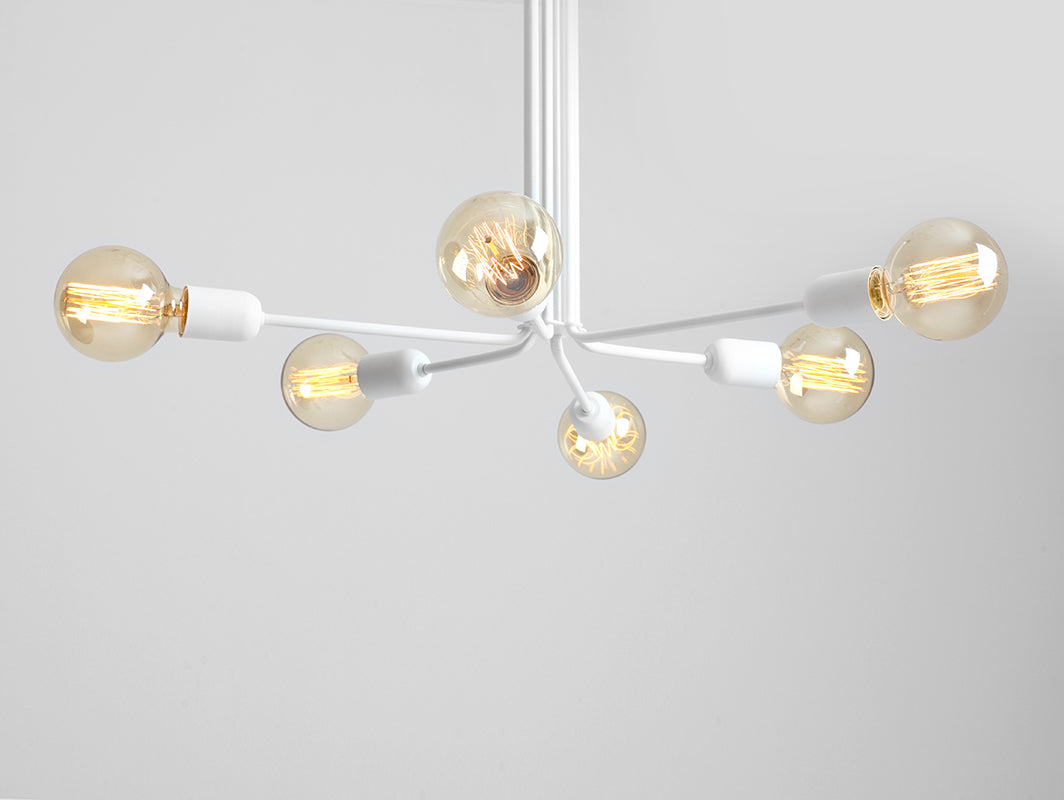 Ne viena, bet sešas spuldzes nodrošina stabilu un efektīvu gaismas avotu. Vanwerk dizaina lampas ir paredzētas gaišu telpu un oriģinālu formu cienītājiem. Tās ir pieejamas piecās izsmalcinātās formās un divās universālās krāsās (baltā, melnā), un tās efektīvi izgaismo ikvienu dzīvojamo istabu, radot oriģinālu tās dekora elementu. Ja spuldzes ir sešas .... Vanwerk lampu formas ir kā ekscentriska dizainera sapnis. Helikoptera spārns, maza galaktika vai raudošā vītola zari - asociācijas var daudzināt atkal un atkal. Neskatoties uz izsmalcinātajām formām, dizaina pamatā ir vienkārša, bet interesanta ideja. Gludas rokas bez liekām detaļām, kas pabeigtas ar kailām spuldzītēm, iespaidīgi izkliedē gaismu. Interesantu risinājumu cienītājiem. Lampa - privātās gaismas avots, nav nekā labāka par dizaina lampu meistara atmosfēru, risinājums iespējami spilgtākais. Mums ir daudz veidu, kā izgaismot jūsu interjeru: dizaina piekaramie gaismekļi, stāvlampas, sienas lampas, plafoni un dizaina galda lampas. Pieejami dažādi stili, piemēram, industriālās lampas vai koka lampas. Lampas. Jūs nevarat būt gaišākas.