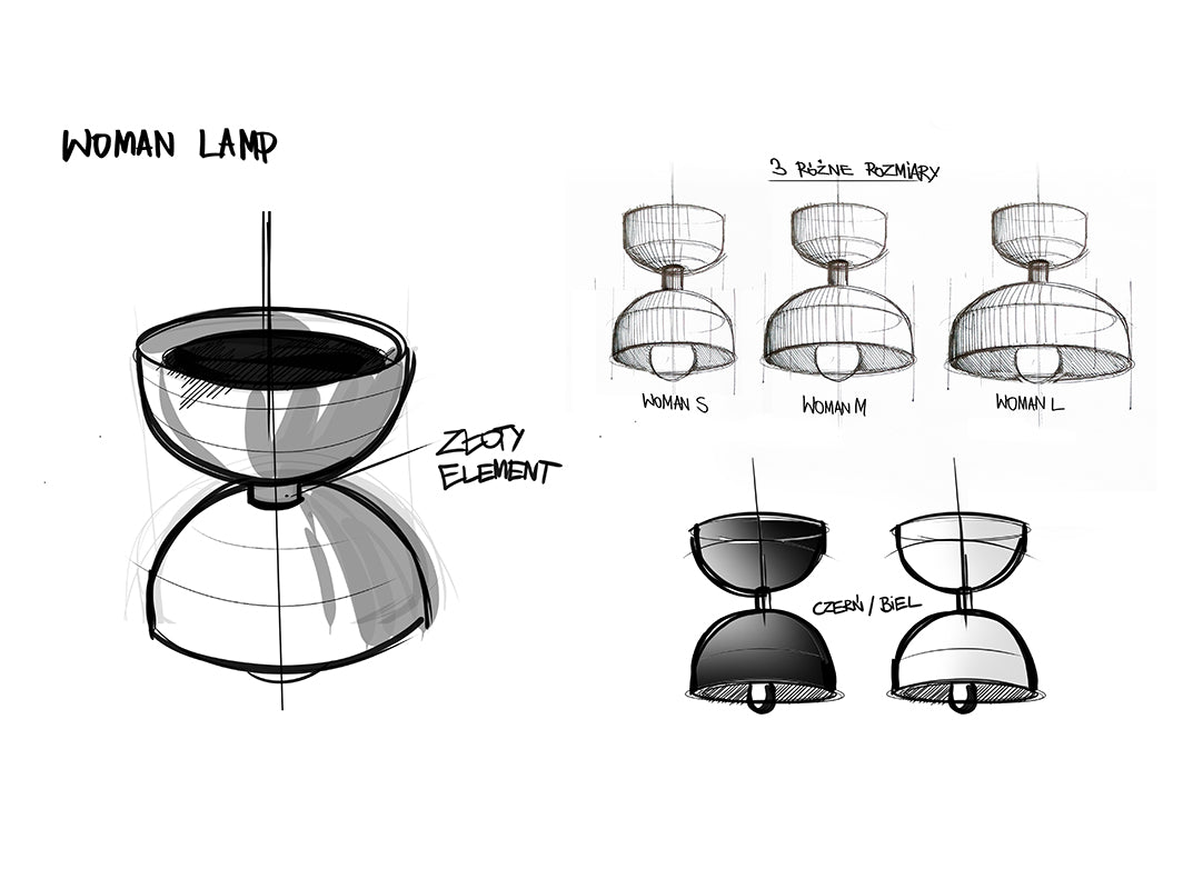 Lampa Woman pārsteidz ar savu formu, struktūru kombināciju un harmoniju. Neraugoties uz izmantotajiem materiāliem, kas liecina par industriālā stila iedvesmu, tā rada viegluma iespaidu. Šī lampa ir pierādījums tam, ka dizaina apgaismojums lieliski iederēsies mūsu mājās. Tajā apvienota šķipsniņa mūsdienīguma ar idilliskas atmosfēras piegaršu. Pielietojums: Sieviešu lampas ir interesants apgaismojums virtuves salai, viesistabai, ēdamistabai. Tās bez problēmām var piekārt arī vienā rindā.