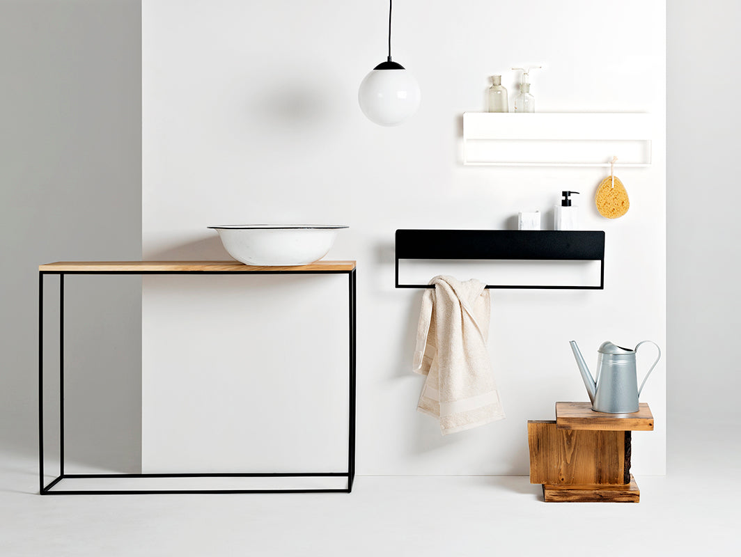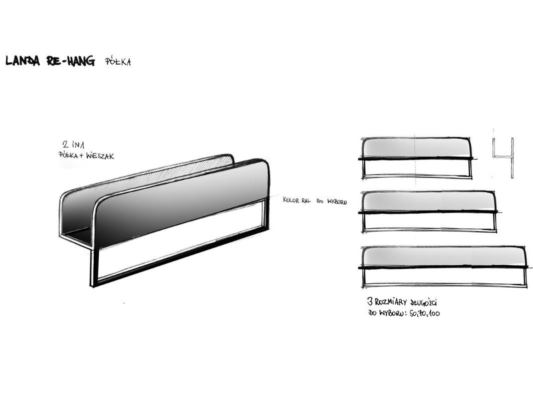 Šī ir LANDA vannas istabas pakaramo kolekcija. Vienkārši, praktiski un eleganti. Tāpēc mums patīk minimālisma dizaina mēbeles! Kolekcijā ir divi modeļi: LANDA HANG un LANDA RE-HANG. Abi pakaramie sevi pierādīs katrā vannas istabā. Dizaineru sienas pakaramo ar plauktu kolekcija LANDA HANG ir vienkārša un iegarena sienas konstrukcija. Līdzīgi kā citām minimālisma mēbelēm, tai nepiemīt liekas detaļas. Pateicoties šādam risinājumam, pakaramais lieliski prezentē sevi pie sienas. Tas nepārslogo iekārtojumu un ir estētisks telpas elements. No vienas puses, tajā ir niša dvieļa pakāršanai, bet, no otras puses, tas darbojas kā plaukts, uz kura var novietot kosmētiku. Dizaina mēbeles, piemēram, šis pakaramais, ir piemērotas dažādām telpām, piemēram, virtuvei. LANDA HANG pakaramais ir pieejams trīs izmēros: 50 cm, 70 cm un 100 cm. Jūs varat izveidot savu sienas kompozīciju. LANDA RE-HANG ir LANDY HANG māsa. Tās dizains arī ir piemērots minimālisma mēbelēm, taču tajā ir vairāk vietas kosmētikas līdzekļiem vai citiem sīkrīkiem. Augšējā daļa pilnībā sastāv no plaukta, savukārt apakšējā daļa ir veidota no pakaramā, lai pakarinātu dvieli. Dizaineru mēbeles bieži vien ir daudzfunkcionālas. Plaukta un pakaramā kombinācija ir izdevīga, lai perfekti organizētu telpu. Vienkārša un skaidra konstrukcija ir viegli tīrāma. Abi pakaramie izskatās nedaudz līdzīgi industriālām mēbelēm, tāpēc tie iederēsies ne tikai vannas istabās, bet arī modernos pilsētas interjeros un loftos. Līdzīgi kā māsas modelis, arī LANDA RE-HANG pakaramais ir pieejams trīs izmēros: 50 cm, 70 cm un 100 cm. Abus pakaramos mēs krāsosim atbilstoši jūsu vēlmēm (pieejamās krāsas atradīsiet RAL paletē). Komplektā nav montāžas elementu. Šādi elementi ir jāizvēlas personīgi, lai pieskaņotu pie sienas. Vai vēlaties apskatīt citas dizaina mēbeles no mūsu piedāvājuma? Mūsu veikalā jūs varat atrast industriālās lampas, skandināvu stila mēbeles un koka galdus. Veikals Meble designerskie sklep internet CustomForm piedāvā jums unikālas formas un praktiskus risinājumus. PIEZĪME! Izvēlieties sev piemērotāko krāsu! Pieejamās krāsas atradīsiet sadaļā CUSTOMIZE / DESIGN.