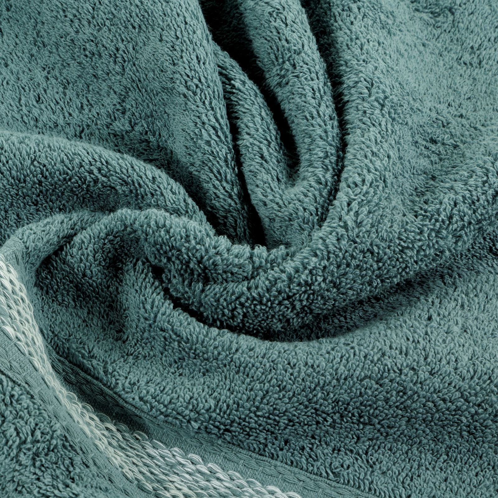 Dvieļu ar dekoratīvu malu un melanžētu svītru platums: 70 cm, garums: 140 cm, krāsa: piparmētra, svars: 500 GSM, sastāvs: Sastāvs: 100% kokvilna; 97% kokvilna, 3% poliesters