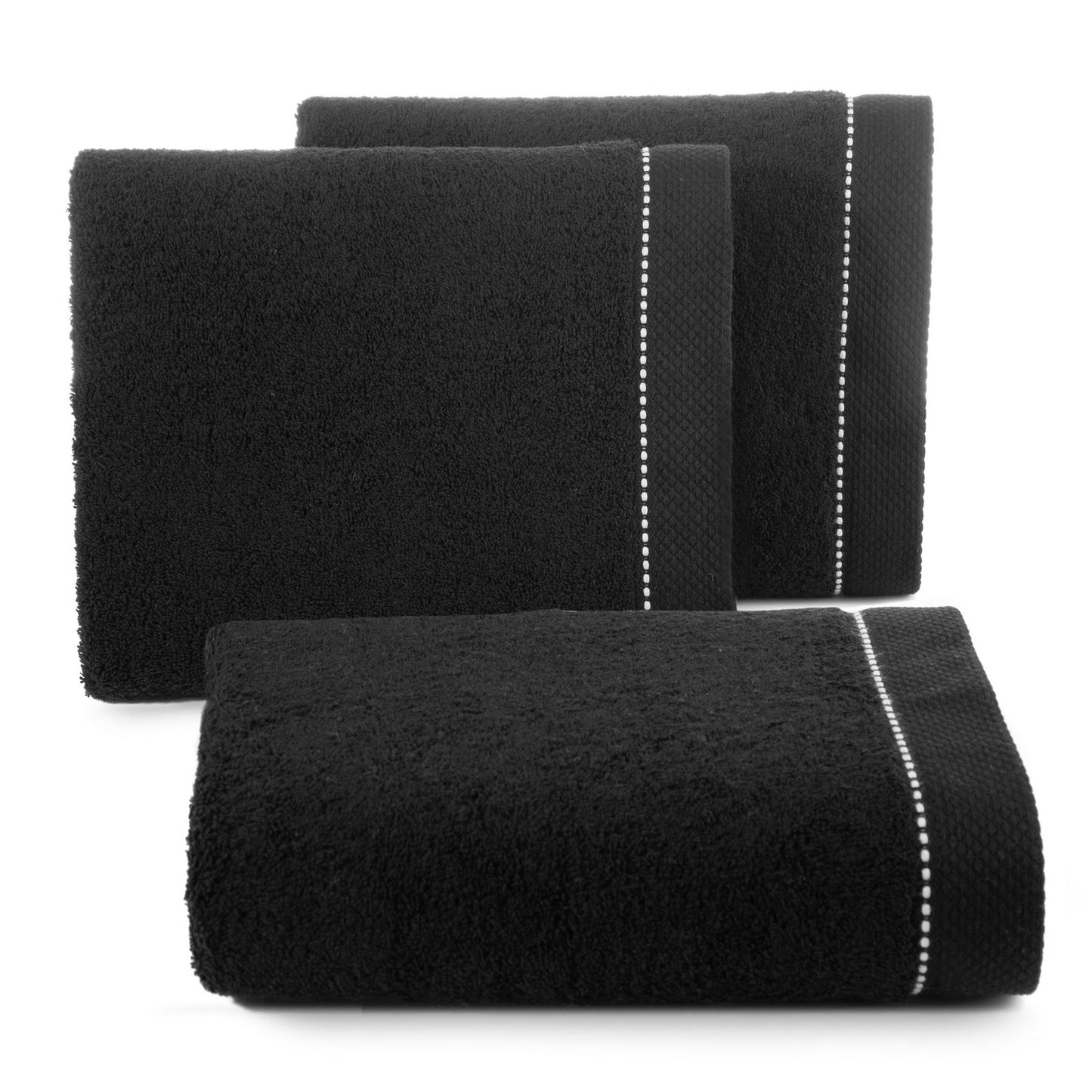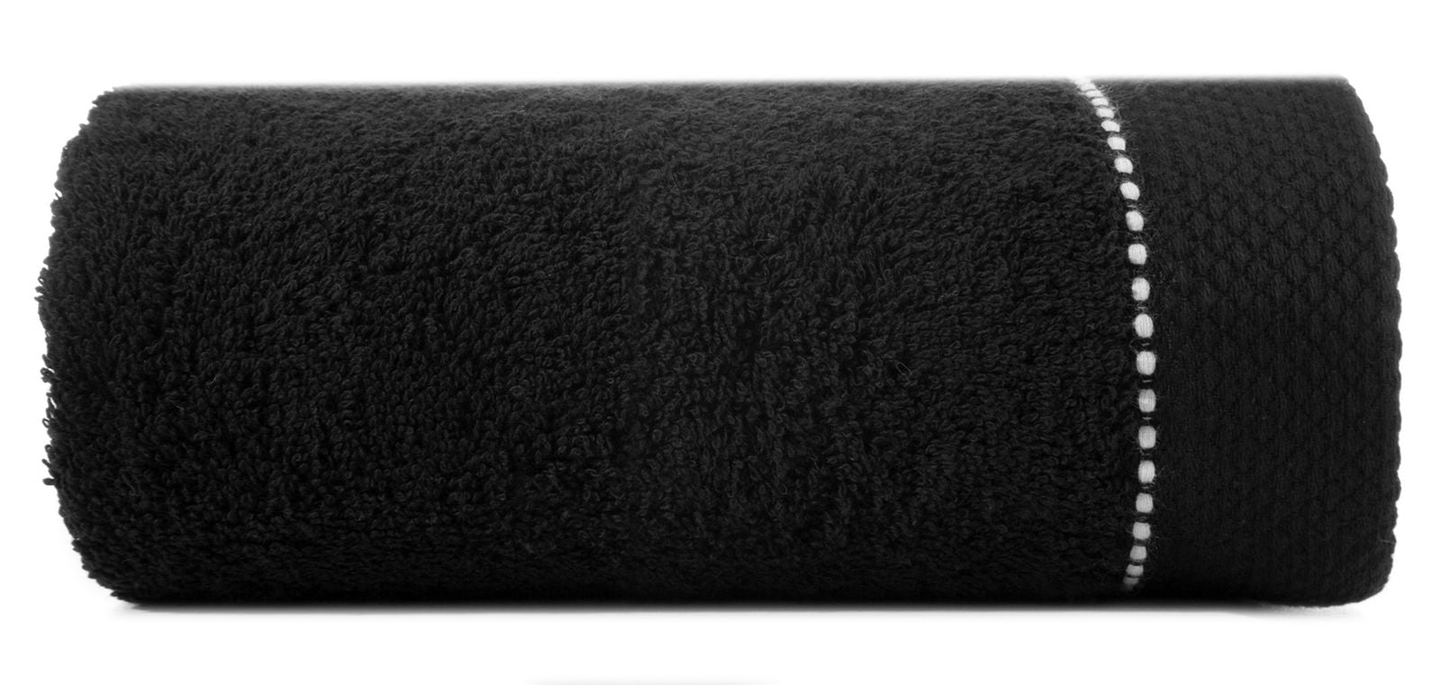 Dvieļu ar kontrastējošiem dūrieniem uz malām platums: 70 cm, garums: 140 cm, krāsa: melna, svars: 500 GSM, sastāvs: Sastāvs: 100% kokvilna; 98,5% kokvilna, 1,5% poliesters.