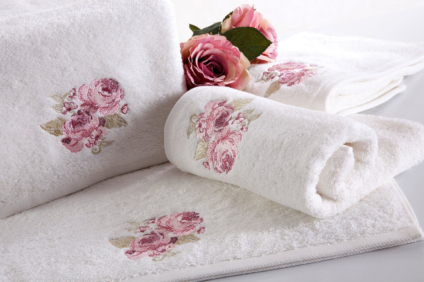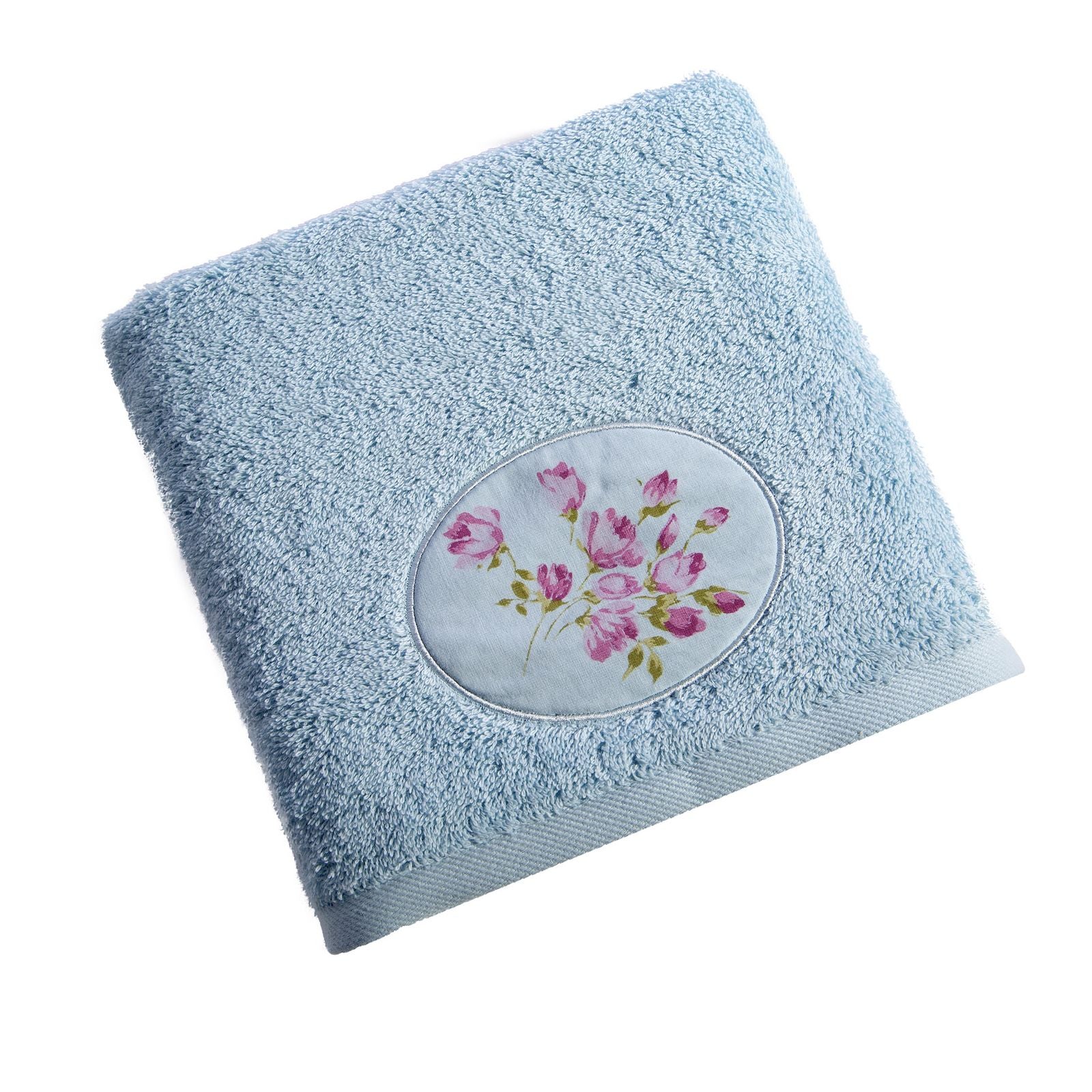 Dvieļa ar ziedu aplikāciju platums: 50 cm, garums: 90 cm, krāsa: zila, svars: 500 GSM, sastāvs: Sastāvs: 100% kokvilna