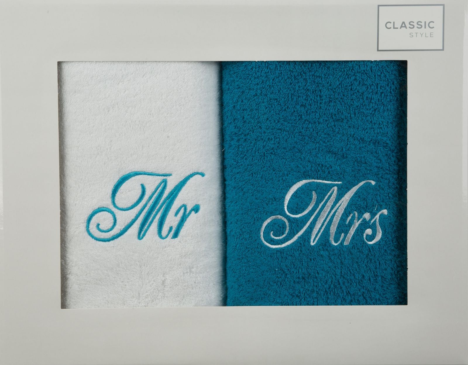 Divu dvieļu komplekts ar izšūšanas platumu: 2 gab. 50 cm, garums: 90 cm, krāsa: balta, svars: 400 GSM, sastāvs: Sastāvs: 100% kokvilna