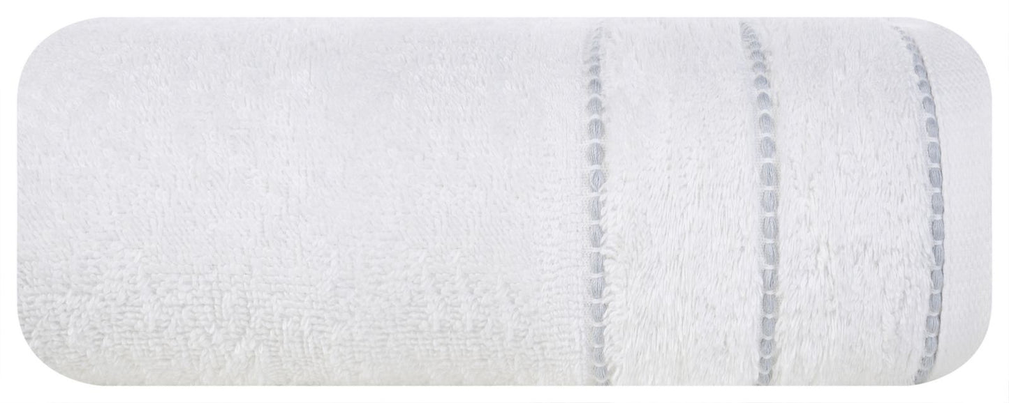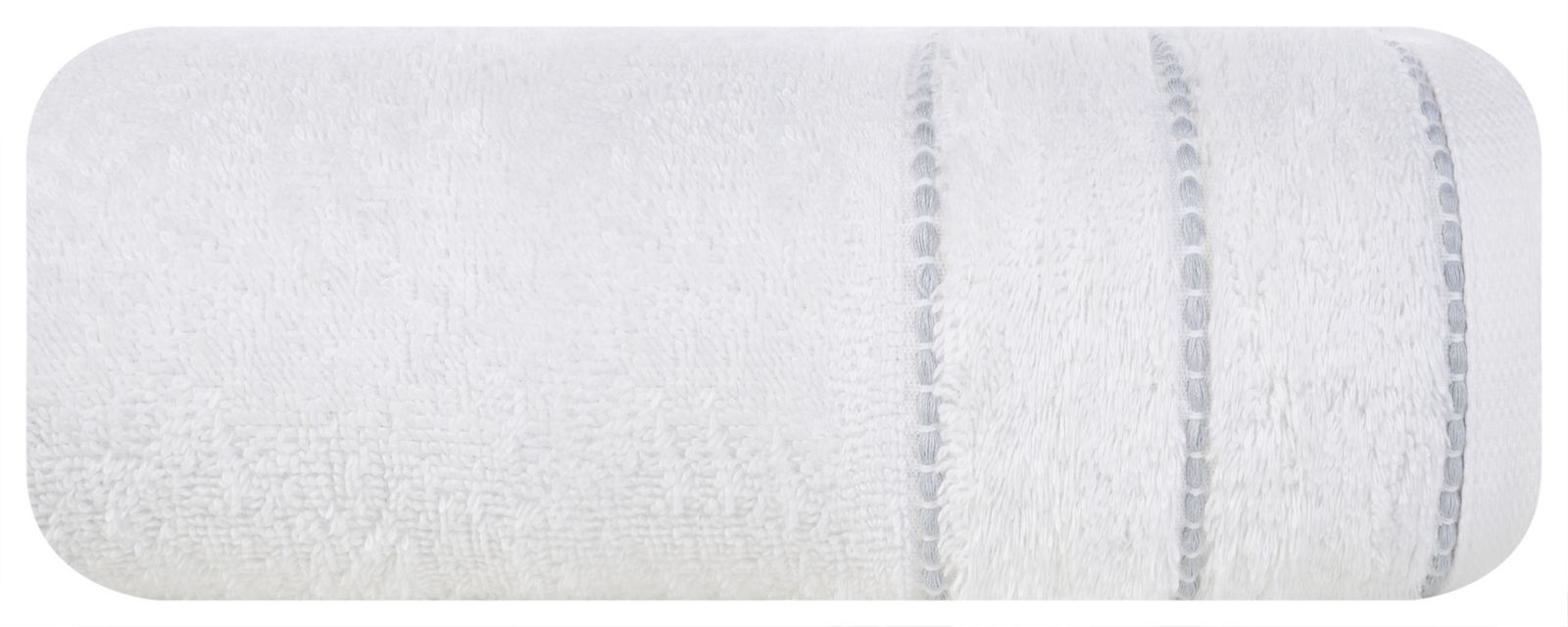 Dvieļu ar dekoratīvu velūra svītru malu platums: 70 cm, garums: 140 cm, krāsa: balta, svars: 500 GSM, sastāvs: Sastāvs: 100% kokvilna; 60% kokvilna, 40% poliesters