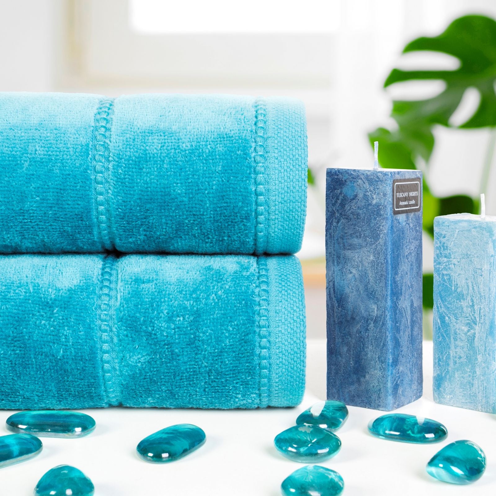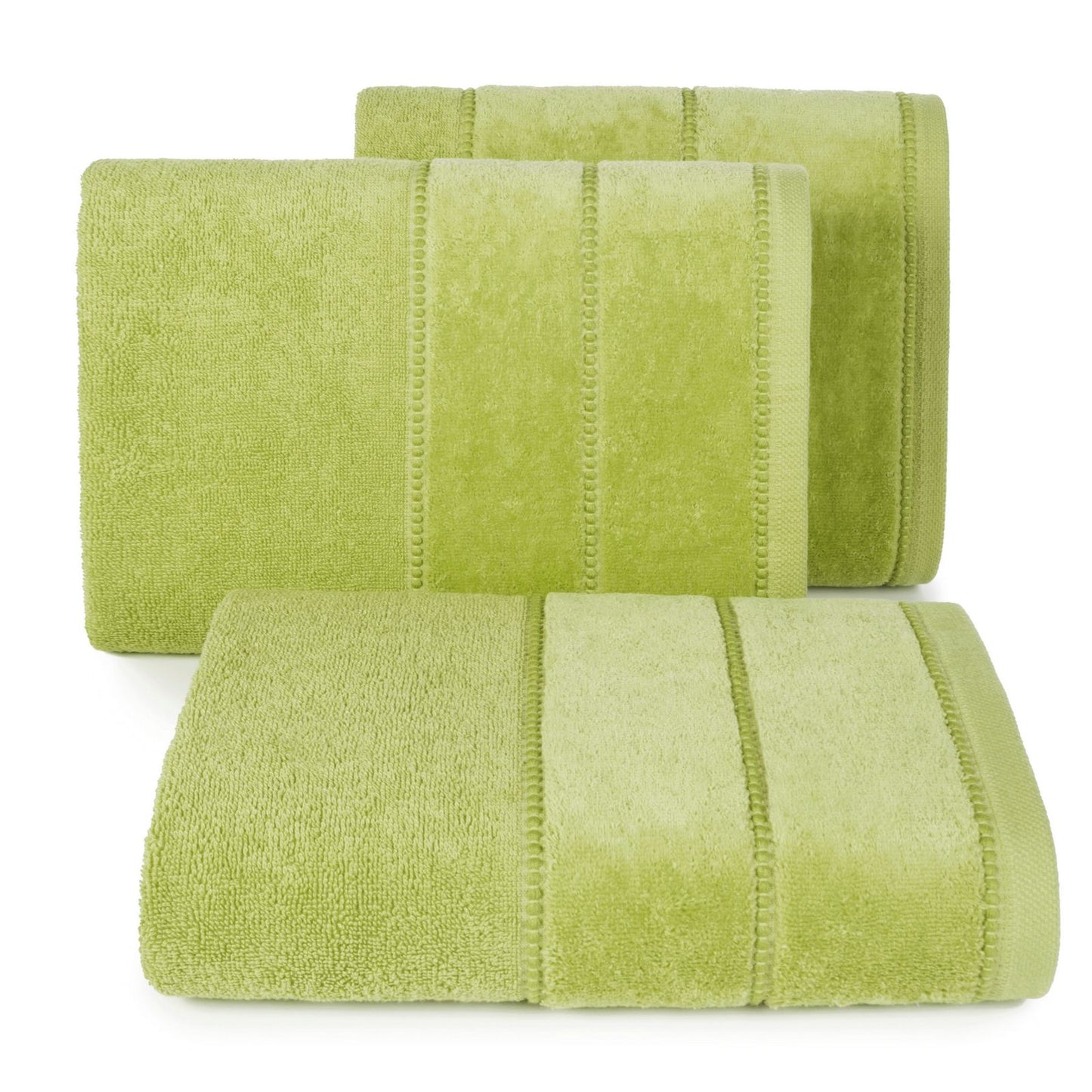 Dvieļu ar dekoratīvu velūra svītru malu platums: 70 cm, garums: 140 cm, krāsa: olīvu, svars: 500 GSM, sastāvs: Sastāvs: 100% kokvilna; 60% kokvilna, 40% poliesters