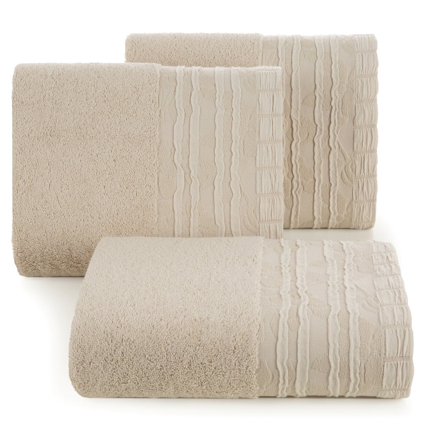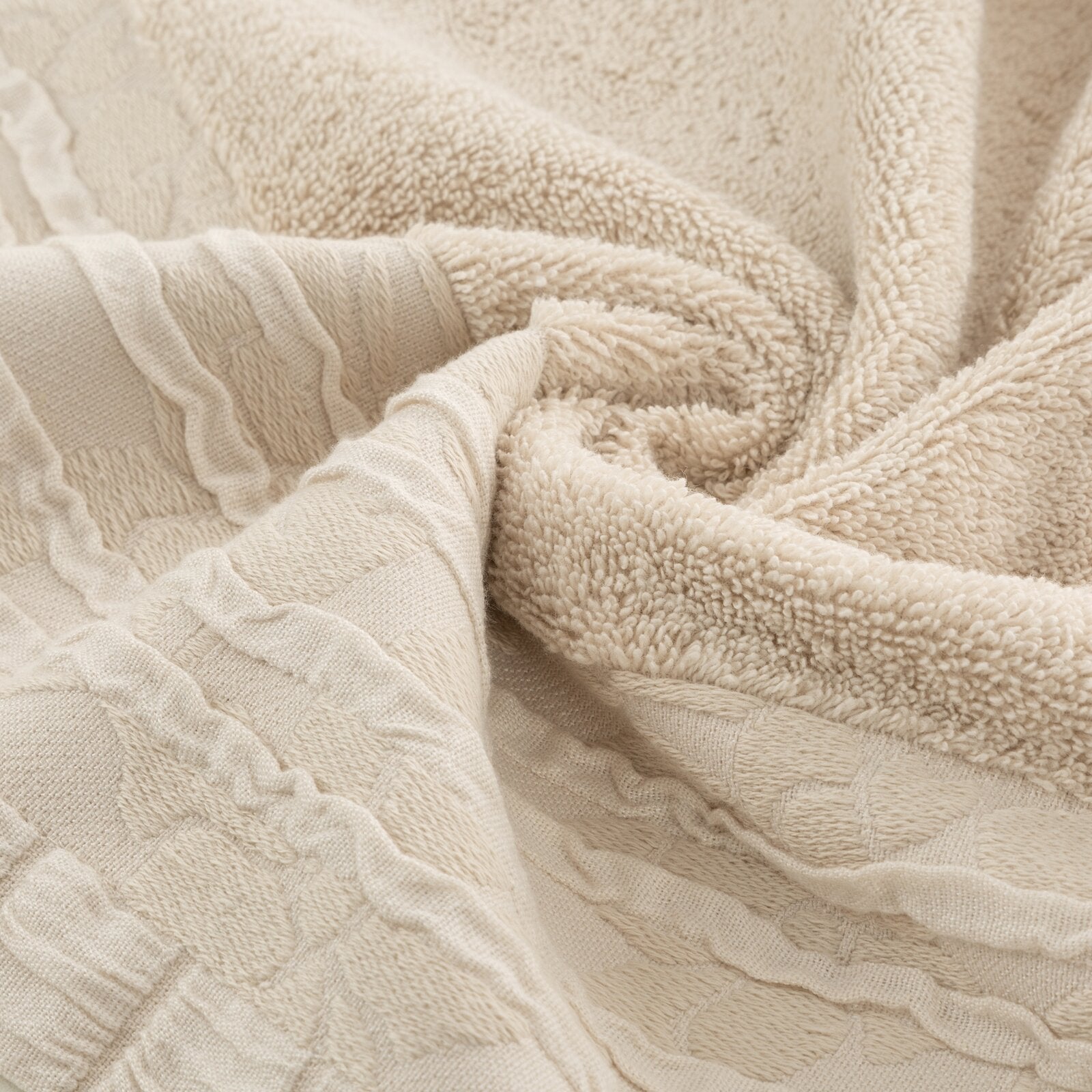 Platums: 70 cm, garums: 140 cm, krāsa: bēša, svars: 500 GSM, sastāvs: Sastāvs: 100% kokvilna; 97% kokvilna, 3% poliesters