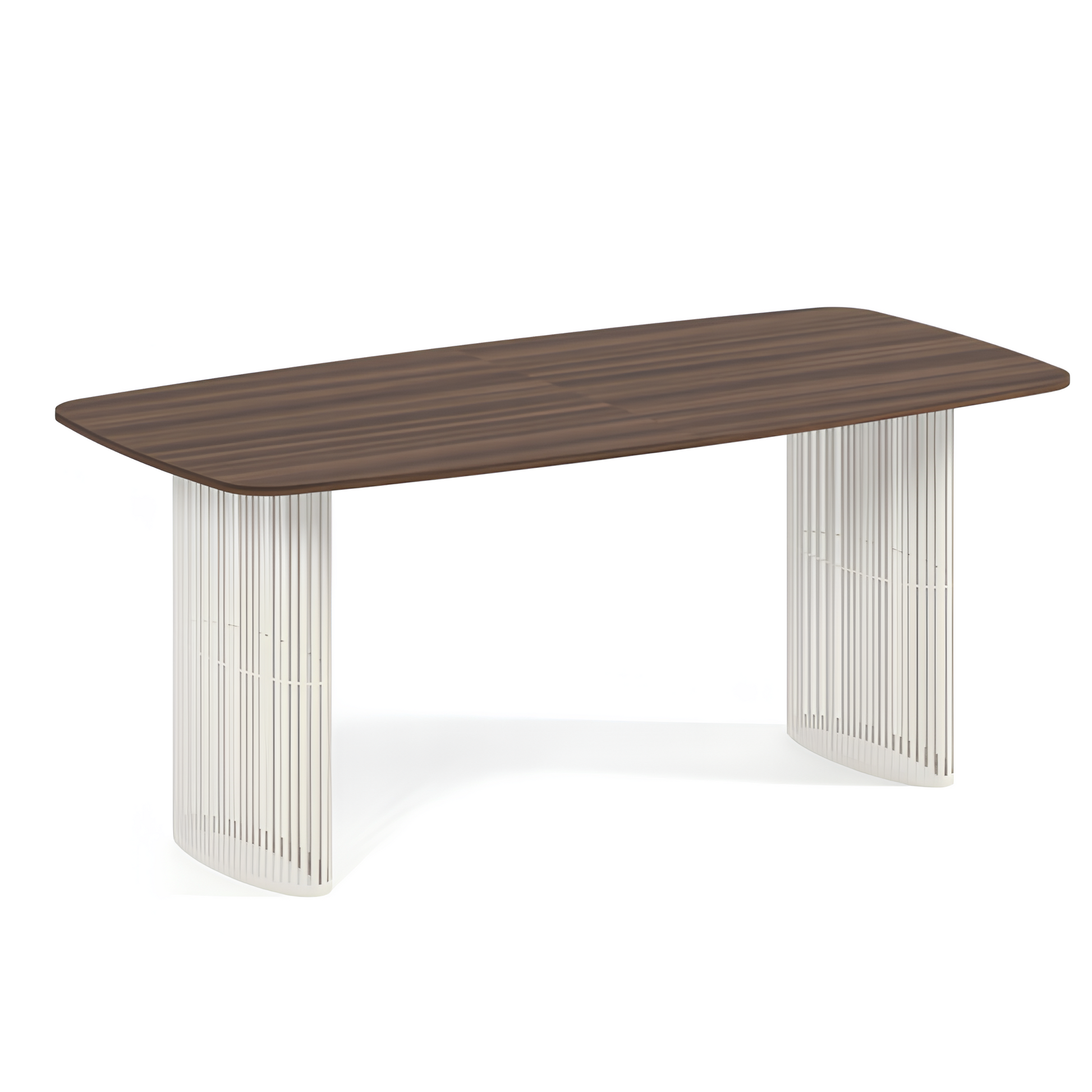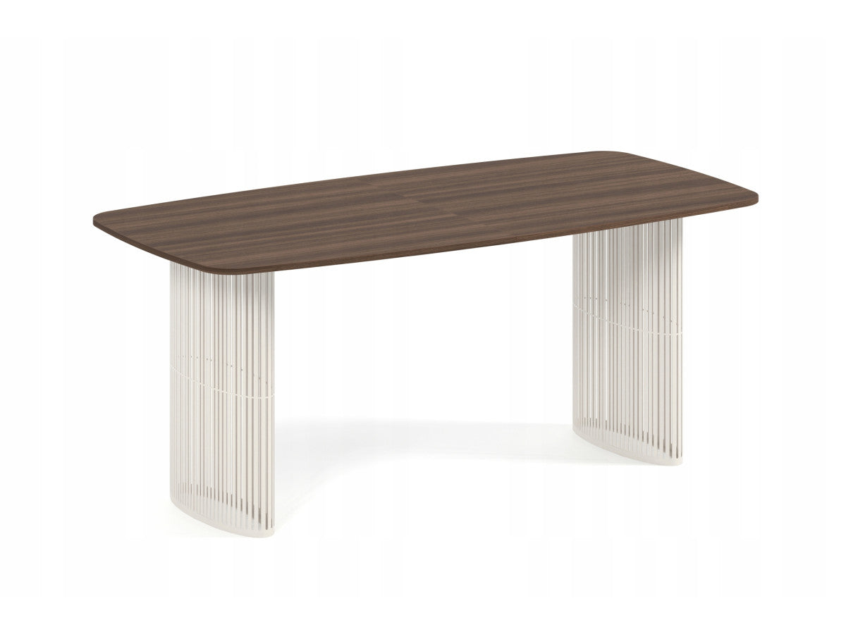 Šis elegantais galds ir ideāls mūsdienīga dizaina un funkcionalitātes apvienojums. Tā unikālā forma lieliski iederas gan dzīvojamās, gan komerciālās telpās. Ovālā galda virsma nodrošina optimālu izmantojamo telpu un neuzkrītošu estētiku. Divas ažūra formas, arkveida kājas piešķir galdam vieglu, bet stabilu sajūtu. Šis galds apvieno mūsdienīgu eleganci ar mūžīgu stilu, piedāvājot izturību un komfortu. Tas lieliski papildina dažādus interjera dizainus.