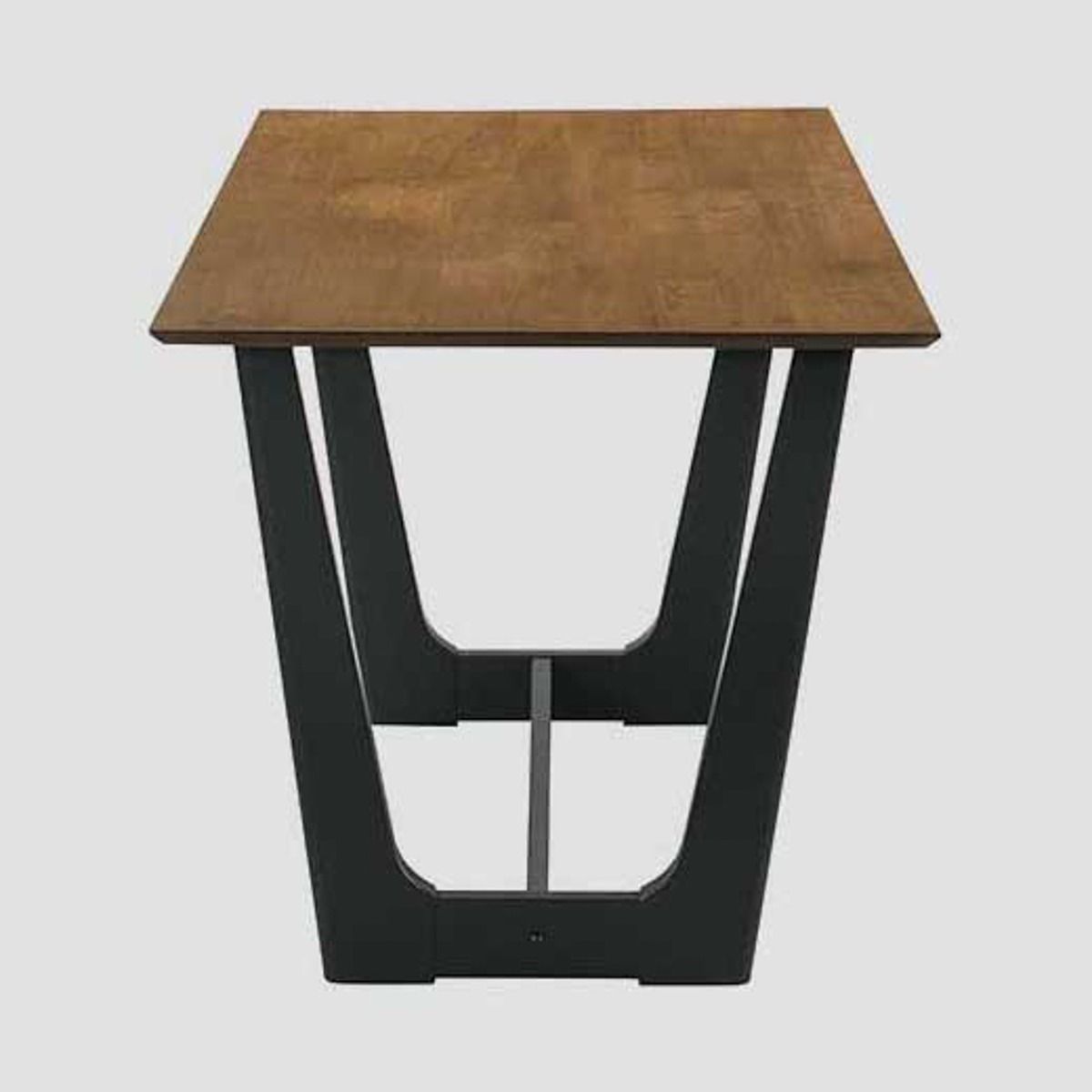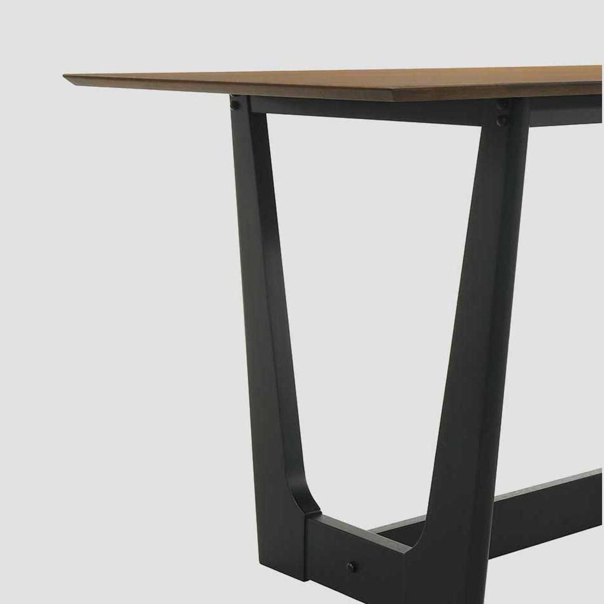 Gumijkoka galda virsma ir izturīga un tai ir redzama, dabiska tekstūra. Melnā, stabilā pamatne nodrošina atbilstošu atbalstu un piešķir konstrukcijai modernu izskatu.