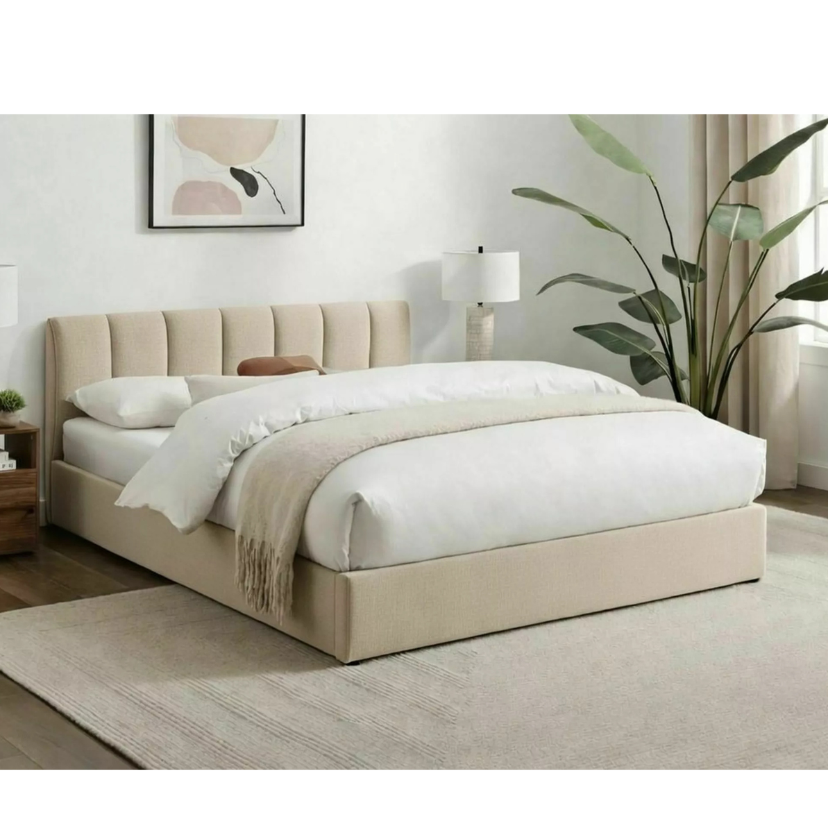 Matrača rāmis ar gāzes pacelšanas mehānismu, pacelšana priekšpusē, izliektas līstes, līstu attālums aptuveni 6 cm (līstu platums 5 cm).