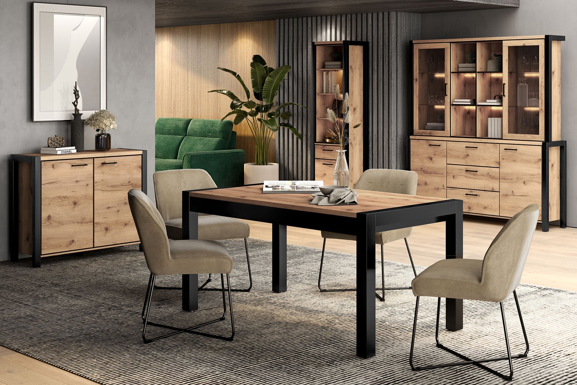Aktava ar savu industriālo stilu un neparasto apdari piešķir jebkuram interjeram atšķirīgu raksturu. Dziļi melnās krāsas un dabīgā koka tekstūras kombinācija rada dinamisku, tomēr kontrastiem bagātu, perfektu saderību.